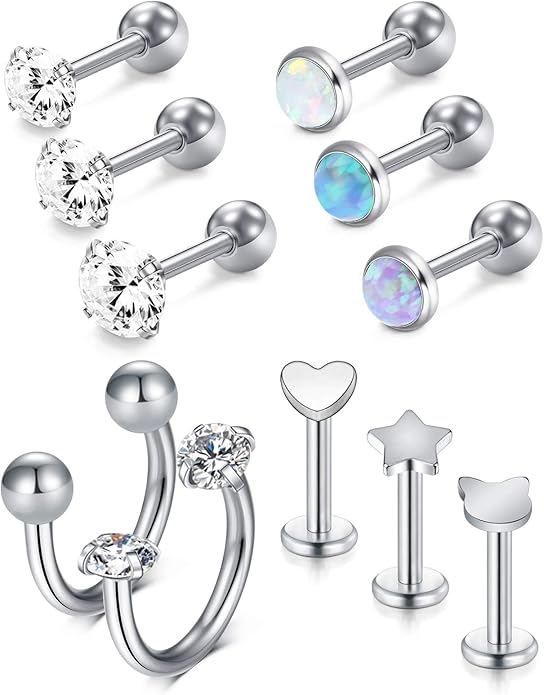 12 verschiedene Styles in einem Set! Diese wunderschönen Flachrücken-Ohrringe aus Edelstahl sind perfekt für Tragus, Knorpel und alle anderen Piercings. Im praktischen 12er-Set für abwechslungsreiche Looks.