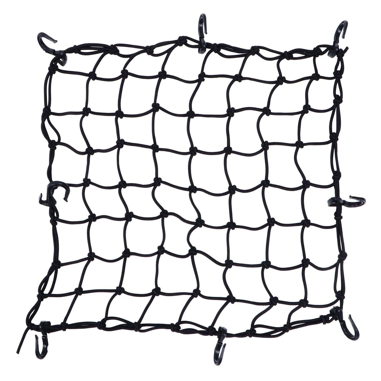 Nie wieder lose Gegenstände auf dem Fahrrad oder Motorrad! Dieses elastische Gepäcknetz aus robustem Latex hält alles sicher fest. Mit 50x50cm (19,65x19,65 Zoll) Größe passt es perfekt auf Gepäckträger, Tankrucksäcke oder in Fahrradkörbe. Die 8 verstellbaren Haken sorgen für sicheren Halt an den unterschiedlichsten Befestigungspunkten. Super elastisch - dehnt sich wenn nötig, geht aber immer wieder in die Ursprungsform zurück. Perfect für Einkäufe, Rucksäcke, Helme oder Werkzeug auf Tour. Ob am Mountainbike, Citybike oder Motorrad - dieses Netz ist dein zuverlässiger Begleiter. Einfach über die Ladung spannen, Haken einhaken und schon ist alles bombenfest. Macht jede Fahrt sicherer und entspannter!