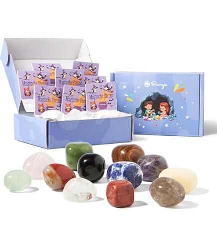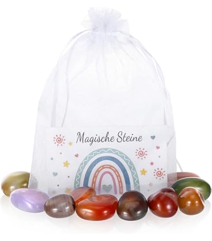 Oh, wie magisch! Dieses Hestya Glückssteine Set mit 24 verschiedenen Natursteinen ist perfekt für Kindergeburtstage, Einschulungen oder als kleine Überraschung. Jeder Stein ist ein Unikat mit 2-3 cm Größe und kommt mit süßen Klappkarten und Zellophantüten. Einfach den Stein in die Tüte stecken, Karte drauf und mit dem beiliegenden Hefter verschließen - schon ist das Mitgebsel fertig! Die Steine regen die Fantasie an und sind tolle Glücksbringer. Perfekt für Schatzsuchen, Adventskalender oder als Geschenk für kleine Steinesammler. Achtung: Enthält Kleinteile, daher nicht für Kinder unter 4 Jahren. Macht jeden Kindergeburtstag zu einem besonderen Erlebnis!