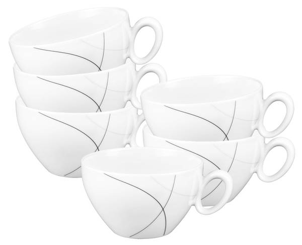 Diese Seltmann Weiden Frühstückstassen bringen Style auf deinen Frühstückstisch! Das 6er-Set im modernen Highline-Design mit eleganten schwarz-grauen Linien auf strahlend weißem Porzellan sieht einfach klasse aus.
