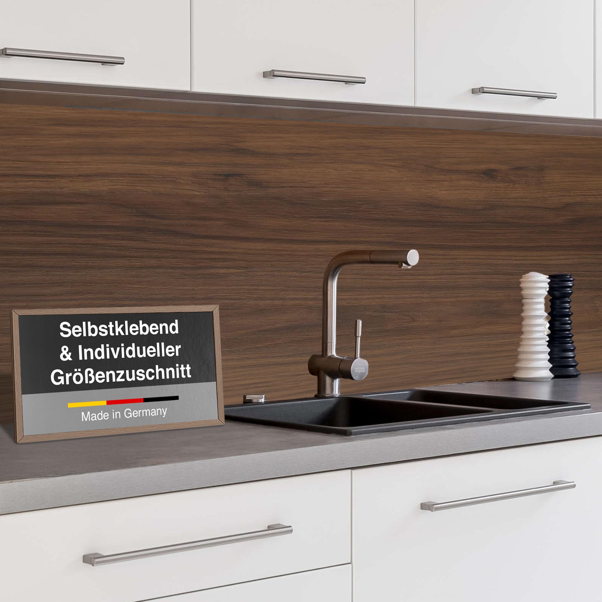 Vollständig wasserfest und abwaschbar - Flecken? Einfach mit einem Lappen wegwischen! Kein aufwändiges Fliesen reinigen mehr. Die schwarze Oberfläche sieht modern und clean aus und passt zu jeder Kücheneinrichtung.