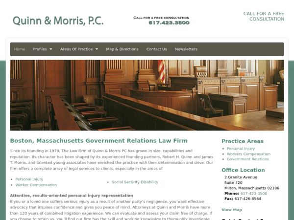 If you or a loved one suffers serious injury as a result of another party's negligence, you want effective advocacy that inspires confidence and gives you peace of mind. Attorneys at Quinn and Morris have more than 120 years of combined litigation experience. We can evaluate and assess your claim free of charge. If you choose to retain us, you'll find our firm has the skill and working knowledge to thoroughly investigate and persuasively argue your case. We have a track record of positive outcomes for our clients, recovering damages through shrewdly negotiated settlements or aggressive litigation.