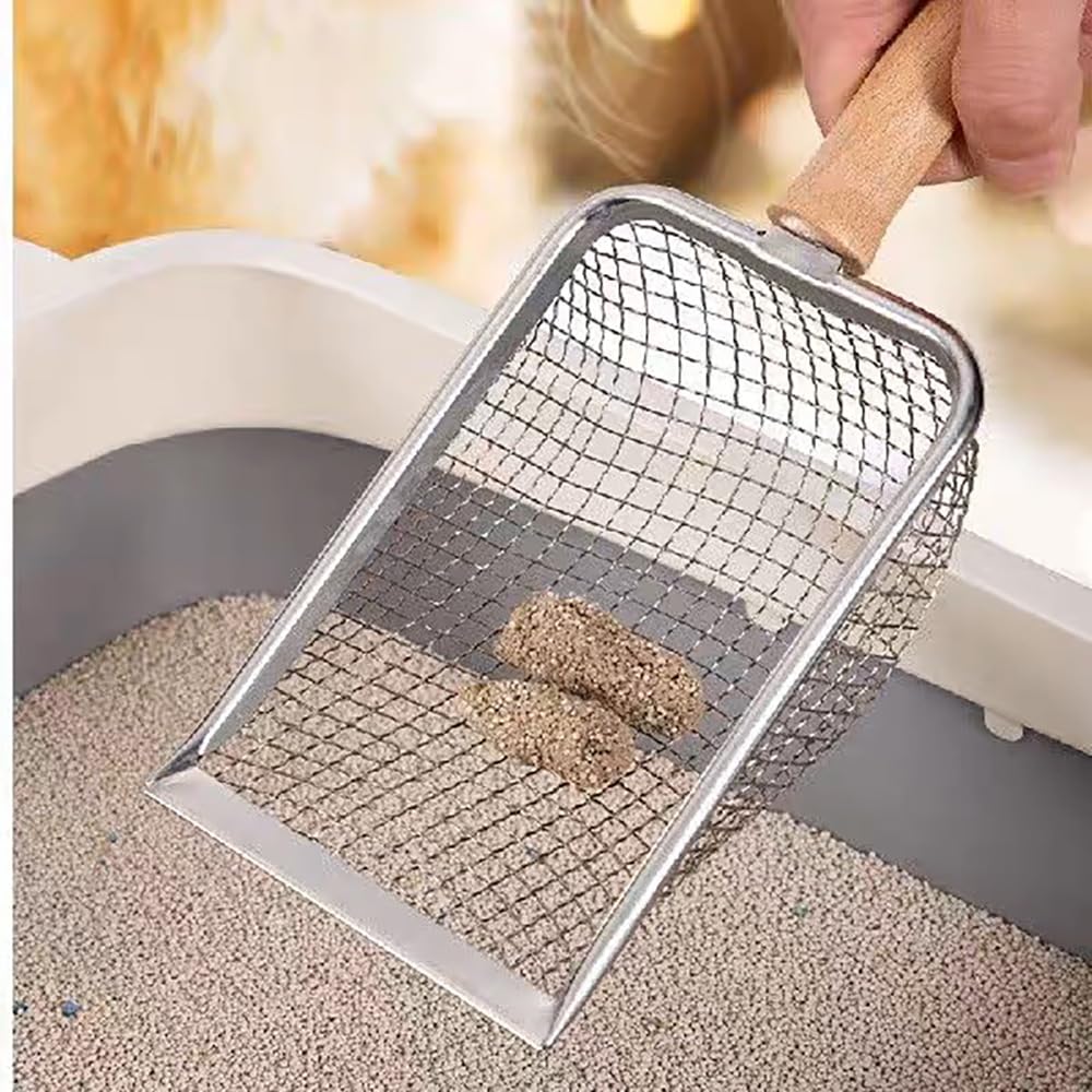 • UQMIQURA Katzenstreuschaufel Edelstahl - Robuste Schaufel Mit 5mm Sieb & Holzgriff