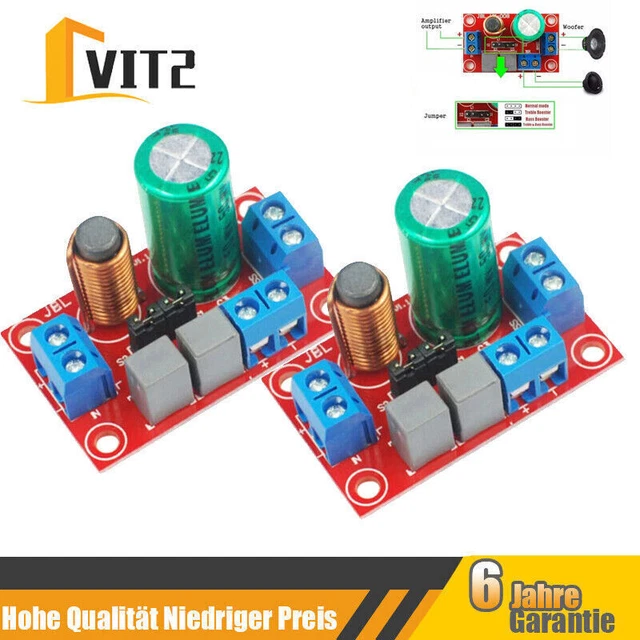 Für alle Audio-Enthusiasten und Heimwerker! Dieser 2-Wege Frequenzteiler mit 800W Leistung ist perfekt für deine Lautsprecher-Projekte. Er teilt die Frequenzen in Hochton und Tiefton auf (Bereich 2500-2800 Hz) und sorgt für kristallklaren Sound. Mit eingebauter Sicherung zum Schutz der Hochtöner - deine teure Ausrüstung ist also safe! Aus robustem Metall gefertigt, hält das Teil ewig. Die Impedanz von 4-8 Ω passt zu den meisten Lautsprechersystemen. Perfekt für DIY-Projekte, Heimkino-Anlagen oder um deine bestehende Soundanlage zu verbessern. Einfach anschließen und sofort besseren Sound genießen! Ob für Hauslautsprecher oder Heimvideo-Systeme - dieses Filtergerät bringt deine Musik auf nächstes Level. Für alle, die es genau nehmen mit ihrem Sound!