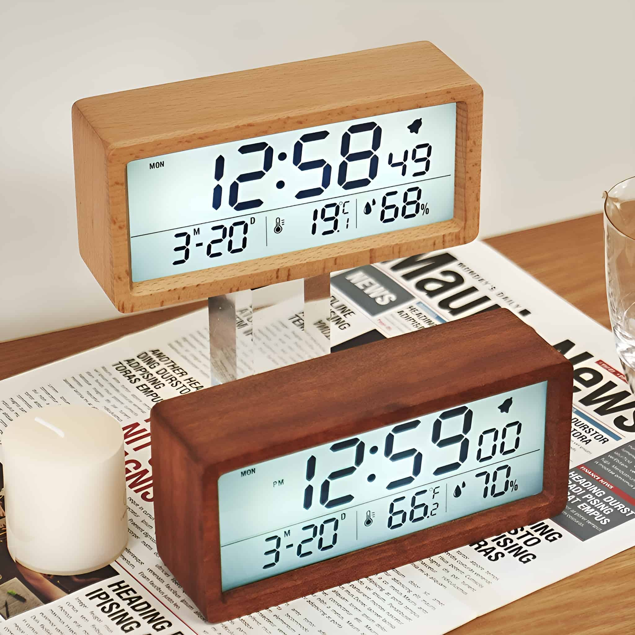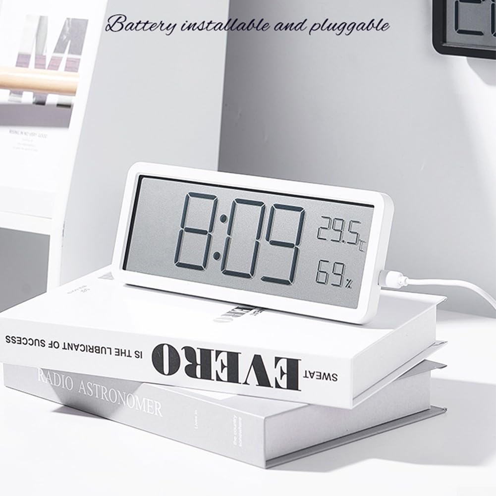 Dieser digitale Wecker ist echt der Hammer! Mit super großem Display, das du entweder auf den Tisch stellen oder an die Wand hängen kannst. Zeigt dir nicht nur die Zeit an, sondern auch die aktuelle Temperatur (-10°C bis 50°C) und Luftfeuchtigkeit (20-99%) - perfekt um immer das richtige Raumklima zu haben. Der automatische Lichtsensor dimmt das Display nachts automatisch runter - kein störendes Licht mehr beim Schlafen! Zwei separate Wecker mit verschiedenen Einstellungen (Werktage, Wochenende, täglich etc.) und Schlummerfunktion. Läuft sowohl mit USB-Kabel als auch mit 3 AAA-Batterien (beides im Lieferumfang!). Einfache Bedienung mit 8 Sprachoptionen, verschiedenen Datumsformaten und Temperatur-Einheiten. Dein perfekter Begleiter für Schlafzimmer, Küche oder Büro!