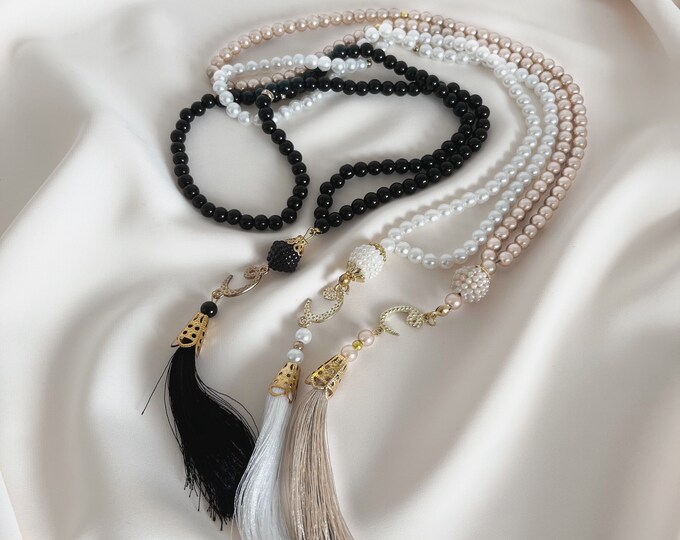 Spirituelle Begleitung in edlem Design! Dieses Prien Tasbih Set mit 99 Perlen ist perfekt für deine täglichen Gebete. Hergestellt in der Türkei mit traditionellem Know-how! Die 6mm Glasperlen fühlen sich wunderbar in der Hand an - ideal für Dhikr und Gebete! In eleganter Creme-Farbe - passt zu jedem Outfit und Gebetskleid! Mit schöner Quaste und Rosenverzierungen - einfach wunderschön! Perfekt für unterwegs - leicht und handlich für Moschee, Arbeit oder Reisen! Ideal als Geschenk für Ramadan, Eid, Hajj oder Hochzeiten! Fördert die Konzentration beim Rezitieren von Subhanallah, Alhamdulillah, Allahu Akbar! Auch als Stressabbau-Hilfe oder Meditationstool super geeignet! Dieses 3er-Set ist perfekt für Familie oder als Sammlerstück! Hol dir ein Stück spirituelle Tradition in modernem Design - deine Seele wird es dir danken!