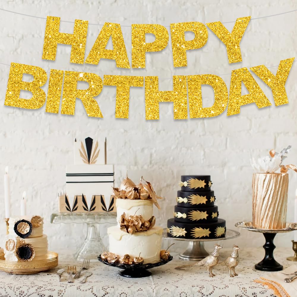 Mach jede Geburtstagsparty zum Highlight! Dieses goldene Happy Birthday Banner ist 3 Meter lang und kommt bereits vorbespannt - kein Basteln nötig! Einfach auspacken und aufhängen. Aus stabilem Kartonmaterial, das wiederverwendbar ist. Das glitzernde Gold-Design sorgt für glamouröse Atmosphäre. Perfekt für Wände, Tische oder als Türdekoration. Ideal für Geburtstage von Frauen, Männern oder Kindern. Schafft sofort Party-Stimmung ohne Aufwand. Einfach dekorieren, Gäste beeindrucken und feiern! Das Must-Have für jede gelungene Geburtstagsparty - ob zu Hause oder im Partyraum.