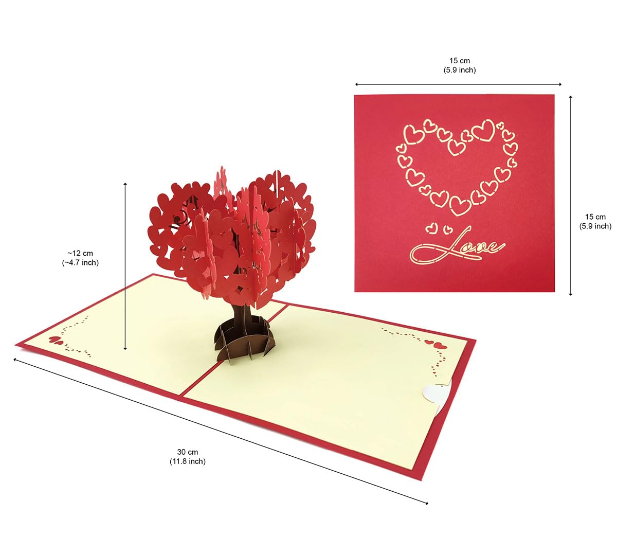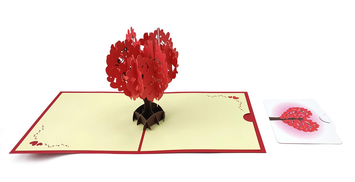 Diese Pop-up-Karte ist einfach magisch! Sobald du sie öffnest, entfaltet sich ein wunderschöner 3D-Liebesbaum mit vielen roten Herzen. Darunter umarmt sich ein Paar auf einer Brücke - so romantisch! Aus hochwertigem, umweltfreundlichem Papier hergestellt, mit feinster Handarbeit. Perfekt für Hochzeiten, Verlobungen, Valentinstag oder Jubiläen. Die leere Innenseite bietet Platz für deine persönlichen Wünsche. Nach dem Öffnen kannst du sie als Dekoration aufstellen - sieht auf jedem Schreibtisch toll aus! Ein wirklich besonderes Geschenk, das lange in Erinnerung bleibt. Einfach mal öffnen und staunen, wie schön sie ist! Macht jedes Geschenk noch specialer.
