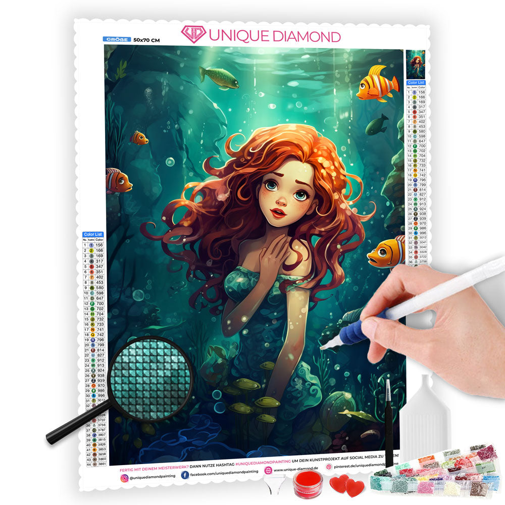 Wow, ein funkelndes Meerjungfrau-Bild zum Selbermachen! Dieses DIAMOND DOTZ Set bringt magischen Glitzer in dein Zuhause. Mit 2330 runden Steinchen die das Licht in 13 Facetten reflektieren - einfach bezaubernd. Alles dabei: Steine, Motivvorlage, Platzierstift, Wachs und Sortierschale - direkt loslegen. Partielles Motiv 25x23cm - perfekt für Einsteiger ab 6 Jahren. Fördert Konzentration und Feinmotorik - spielerisch lernen. Einfach Steinchen aufkleben und ein glitzerndes Kunstwerk erschaffen. Ideal als Geschenk oder für kreative Nachmittage. Mach dein eigenes funkelndes Meisterwerk!