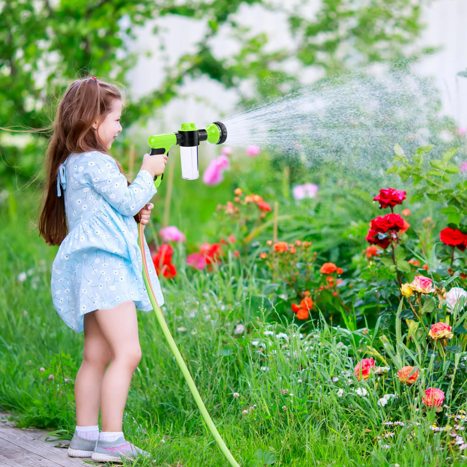 Diese Gartenbrause ist dein neuer Alleskönner für draußen! Mit ganzen 8 einstellbaren Sprühmodi meisterst du jede Aufgabe - ob schonendes Bewässern empfindlicher Pflanzen, kräftiges Reinigen des Autos oder sanftes Abduschen deiner Haustiere. Der integrierte Seifenspender mit praktischer Skala macht das Mischen von Reinigungsmitteln oder Dünger zum Kinderspiel. Aus robustem Kunststoff und Gummi gefertigt, sorgt sie für dichte Verbindungen ohne lästiges Tropfen. Der rutschfeste Griff liegt auch mit nassen Händen sicher in der Hand. Kompatibel mit den meisten Standard-Gartenschläuchen - einfach aufstecken und loslegen! Perfekt für Gartenliebhaber, Autobesitzer und Tierhalter, die Wert auf Vielseitigkeit und Qualität legen. Mach deine Outdoor-Reinigungsarbeiten effektiver und spaßiger!