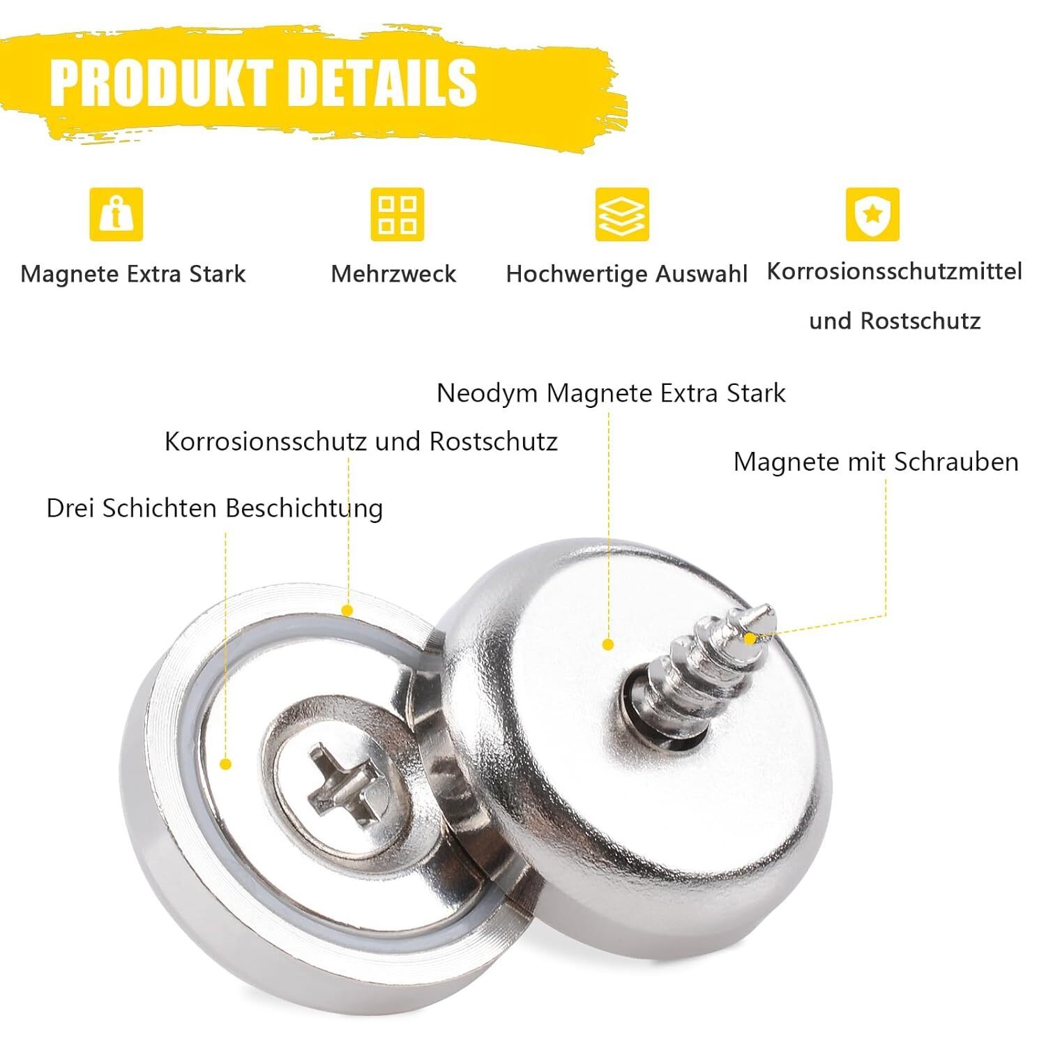 Boah, diese Neodym-Magnete sind richtig stark! 18 Stück im Set, jeder mit satten 10 KG Haltekraft - da bleibt wirklich alles haften, was halten soll. Mit 20x7mm sind sie perfekt für alle möglichen Projekte. Das coole Loch in der Mitte macht sie super vielseitig - einfach aufschrauben oder aufhängen. Und die schwarze Schutz-Kapsel ist genial: Sie schont sowohl die Magnete als auch deine Möbel vor Kratzern. Perfekt für die Küche, um Rezepte an den Kühlschrank zu pinnen, im Bad für Handtuchhalter oder im Büro für wichtige Notizen. Auch in der Werkstatt oder im Lager total praktisch. Einfach unkaputtbar und sooo nützlich im Alltag! Das Set reicht für mehrere Projekte - endlich Ordnung mit Magnet-Power!