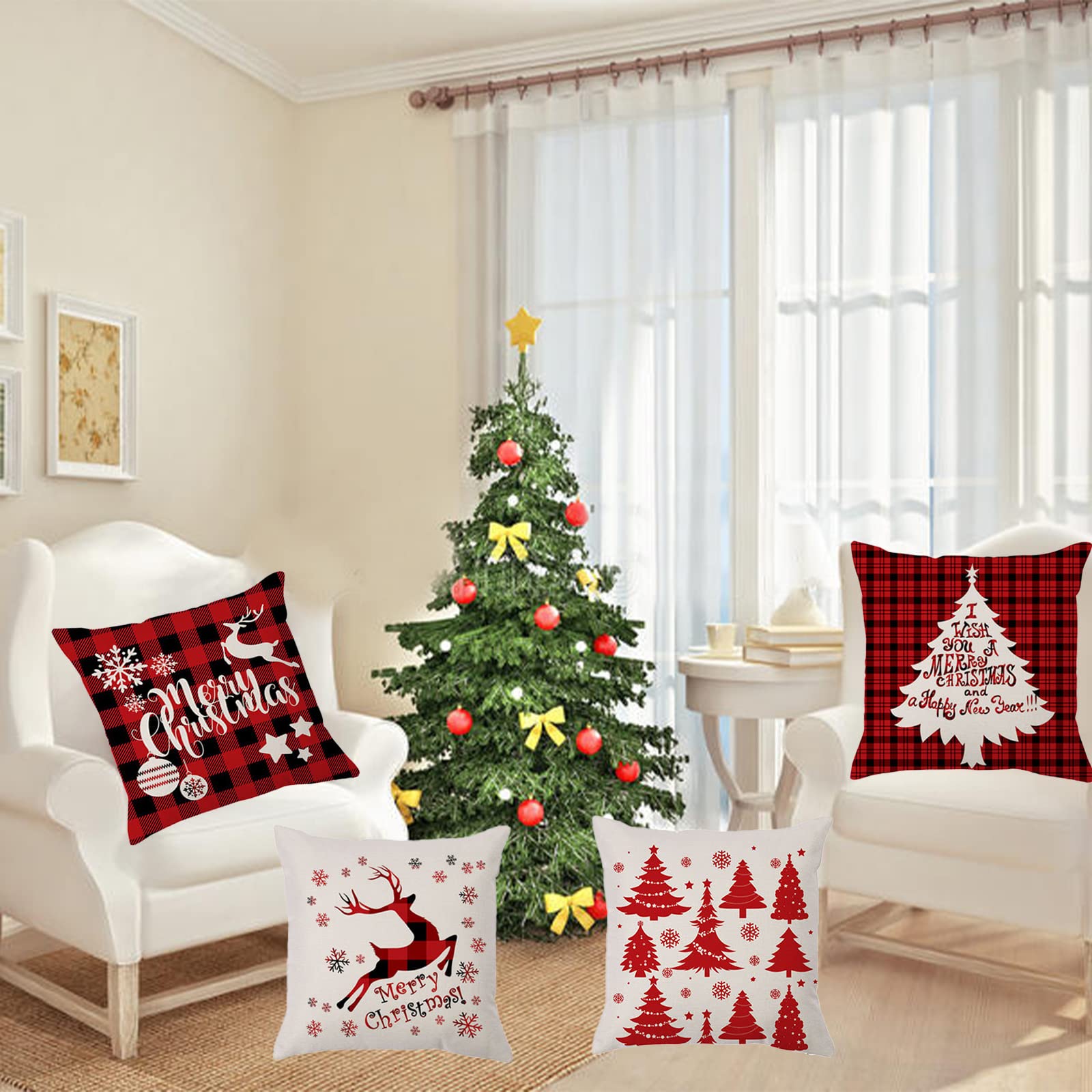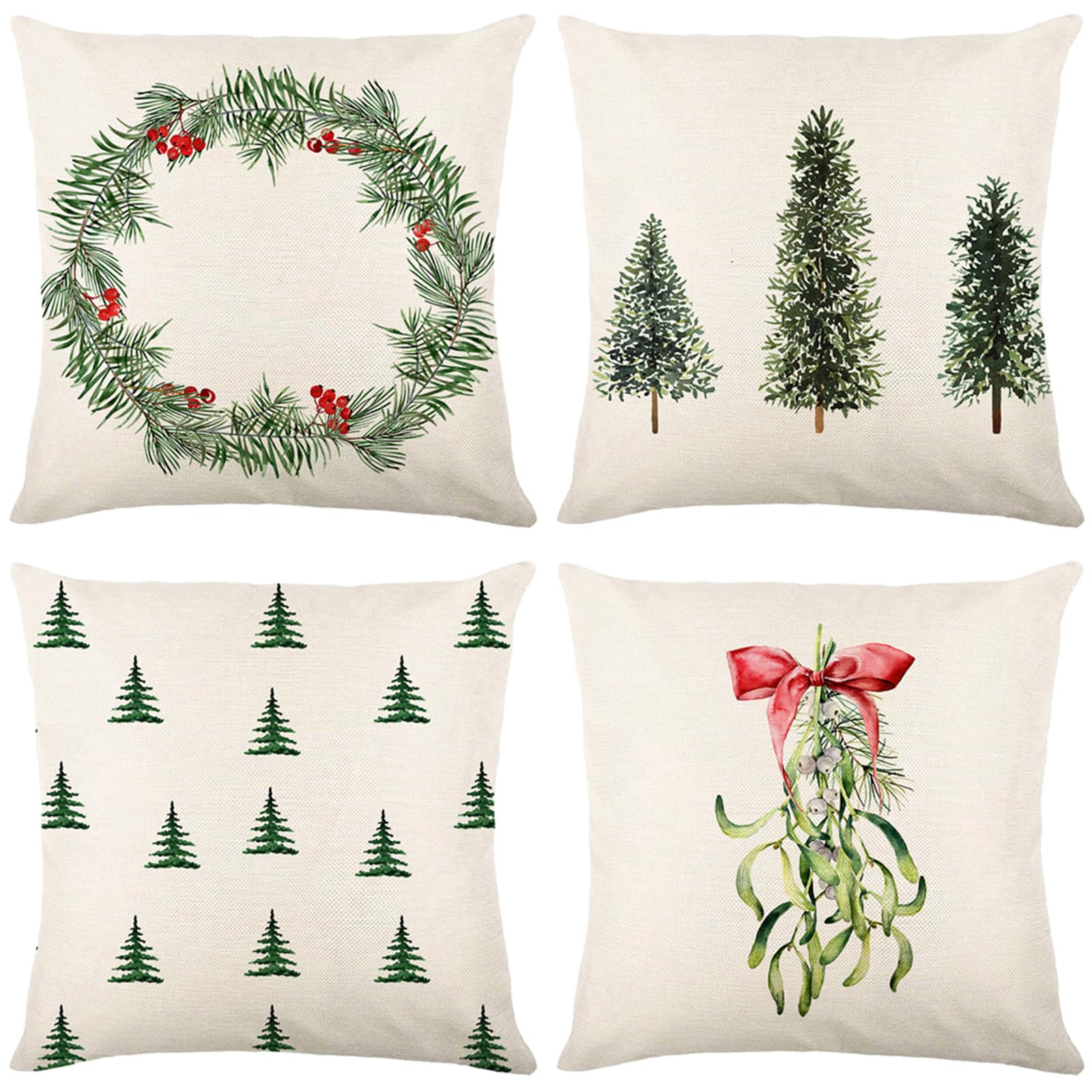 • Bseical Weihnachtskissenbezüge 45x45cm - 4er Set Mit Weihnachtsbaum-Muster, Leinen Look