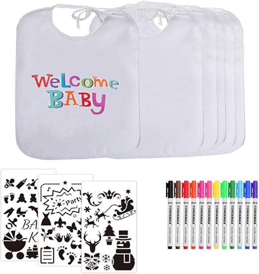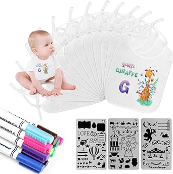 Hey ihr Lieben! Stellt euch vor: 8 super süße weiße Lätzchen, die ihr nach Herzenslust bemalen könnt - perfekt für jede Babyparty! Im Set sind alles dabei: 16 coole Mal-Schablonen (ca. 13x13cm) und 12 bunte Textilstifte. So wird jede Babyparty zum kreativen Erlebnis! Die Lätzchen haben ein cleveres 2-Schichten-Design: Vorne weiche Baumwolle für eure Kunstwerke, hinten eine wasserdichte Schicht, die Babys Kleidung trocken hält. Nach dem Bemalen einfach 24 Stunden trocknen lassen - dann sind die Motive fest. Tipp: Am besten von Hand waschen und nicht zu stark rubbeln. Die Schultergurte sind verstellbar, passen also super für jedes Baby. Ob als Geschenk zur Geburt, für den Kindergeburtstag oder einfach so - mit diesen Lätzchen macht Basteln richtig Spaß! Übrigens: Die Maße sind ca. 18x18cm, genau richtig für die kleinen Racker. Lasst eurer Kreativität freien Lauf und gestaltet einzigartige Erinnerungsstücke!
