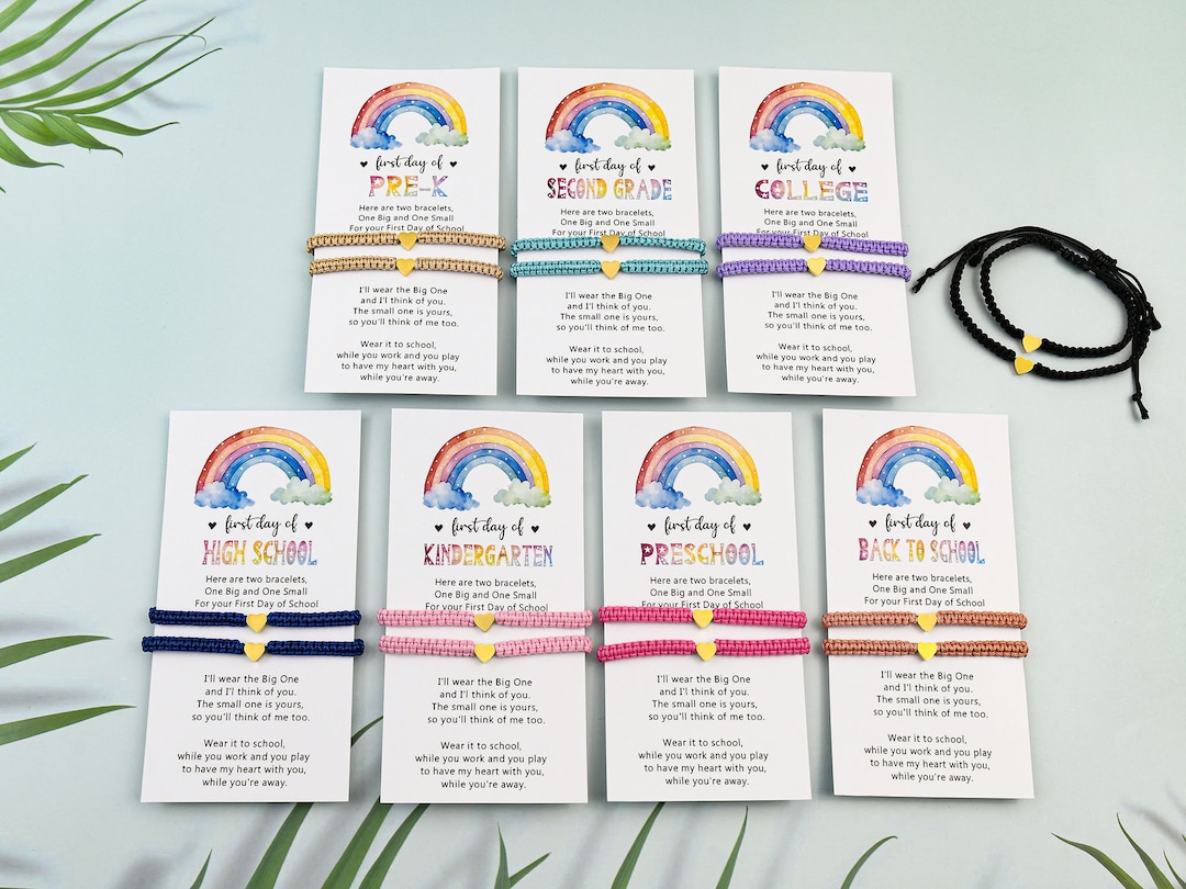 Hey, Eltern von Schulstartern! Dieses süße Eltern-Kind Armband Set ist das perfekte Geschenk zur Einschulung. Mit den beiden verstellbaren Armbändern (15-24cm für Erwachsene, 12-20cm für Kinder) könnt ihr eure Verbindung symbolisieren. Der Edelstahl-Anhänger zeigt einen Elefanten in Herzform mit Baby-Elefant - einfach niedlich! Die reißfeste Baumwollschnur ist handgefertigt und hält gut. Wenn euer Kind in der Schule ist und ihr nicht da sein könnt, erinnert es das Armband daran, dass ihr immer in seinem Herzen seid. Das nimmt die Angst vor der Trennung und gibt Mut. Perfekt nicht nur zur Einschulung, sondern auch zu Kindergeburtstagen oder Weihnachten. Ein Geschenk, das wirklich von Herzen kommt und lange Freude macht!