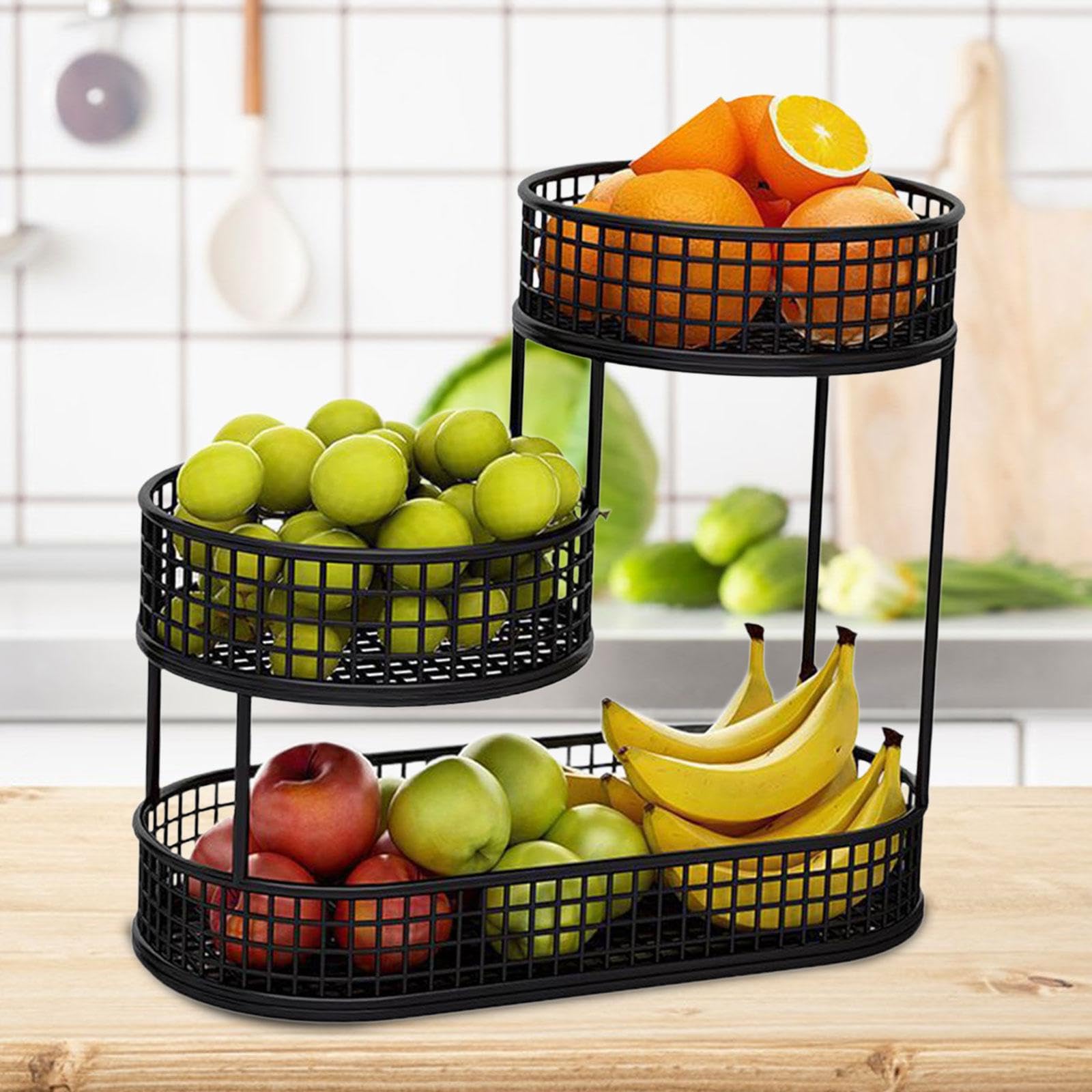 Endlich Ordnung auf der Küchentheke! Dieser wunderschöne 3-stöckige Obstkorb aus Metall ist nicht nur praktisch, sondern sieht auch noch richtig stylisch aus. Mit den Maßen 44x21cm bietet er reichlich Platz für Äpfel, Bananen, Tomaten und alles was dein Obst- und Gemüseherz begehrt. Das offene Design sorgt für optimale Belüftung - dein Obst bleibt länger frisch und appetitlich. Aus robustem, pulverbeschichtetem Stahl gefertigt, ist der Korb stabil und rostfrei. Der praktische Hebering macht das Tragen zum Kinderspiel - einfach umsiedeln wenn's mal woanders hin soll. Ob in Weiß, Gold oder Schwarz - der Korb passt in jede Küche und macht überall eine gute Figur. Perfekt nicht nur für Obst, sondern auch für Snacks, Backzubehör oder sogar als Handtuchhalter im Bad. Spart jede Menge Platz und sieht dabei noch dekorativ aus. Ein echtes Multitalent für mehr Ordnung im Haushalt - und ein super Geschenk für alle, die Wert auf eine aufgeräumte Küche legen!