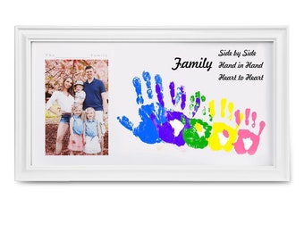Ewige Erinnerungen zum Selbermachen! Dieses süße Family Prints Set lässt dich die winzigen Hände und Füße deines Babys für immer festhalten. Im Set enthalten ist ein hochwertiger Holzrahmen in deiner Wahl zwischen Schwarz oder Weiß, 4 transparente Acrylplatten (einfach die Schutzfolie vor dem Benutzen entfernen), 6 bunte Farben, ein Marker, ein Pinsel und zwei spurlos entfernbare Nägel. So kannst du kreative Muster mit den Hand- und Fußabdrücken der ganzen Familie gestalten und dazu noch Daten, Namen oder liebe Botschaften schreiben. Der Naturholz-Rahmen mit seinen glatten Kanten passt perfekt in jedes Zuhause und kann sowohl an der Wand aufgehängt als auch aufgestellt werden. Ein wunderbares Geschenk für werdende Eltern, zur Geburt, zu Mutter- oder Vatertag, oder einfach als bleibende Erinnerung an die kostbare Babyzeit. Selbst wenn die Kleinen mal groß sind, werden sie sich über diese persönlichen Erinnerungen freuen! Das Basteln macht der ganzen Familie Spaß und am Ende hast du ein einzigartiges Kunstwerk, das von den schönsten Momenten des Familienlebens erzählt. Einfach die Farben auftragen, Abdrücke machen, trocknen lassen und im Rahmen arrangieren - schon hast du ein Unikat voller Liebe und Erinnerungen.