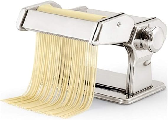 Mmmmh, selbstgemachte Nudeln - gibt's was Besseres? Mit dieser manuellen Nudelmaschine wird's zum Kinderspiel! Aus hochwertigem Edelstahl gefertigt, rostfrei und super langlebig. Du kannst die Teigdicke in 6 Stufen einstellen - von hauchdünn für Lasagne bis etwas dicker für Tagliatelle. Einfach den Teig durchkurbeln und schon kommen perfekte Nudeln raus! Ob Spaghetti, Ravioli oder Lasagne - deiner Kreativität sind keine Grenzen gesetzt. Perfekt für die Familienküche, aber auch für Restaurants und Hotels geeignet. Selbstgemachte Nudeln sind nicht nur lecker, sondern auch gesund und hygienisch - du weißt genau, was drin ist! Die Maschine lässt sich einfach am Küchentisch befestigen und ist im Handumdrehen einsatzbereit. Einfach Mehl, Eier und Wasser mischen, Teig portionsweise durch die Maschine drehen - und schon hast du frische, köstliche Pasta! Buon Appetito!