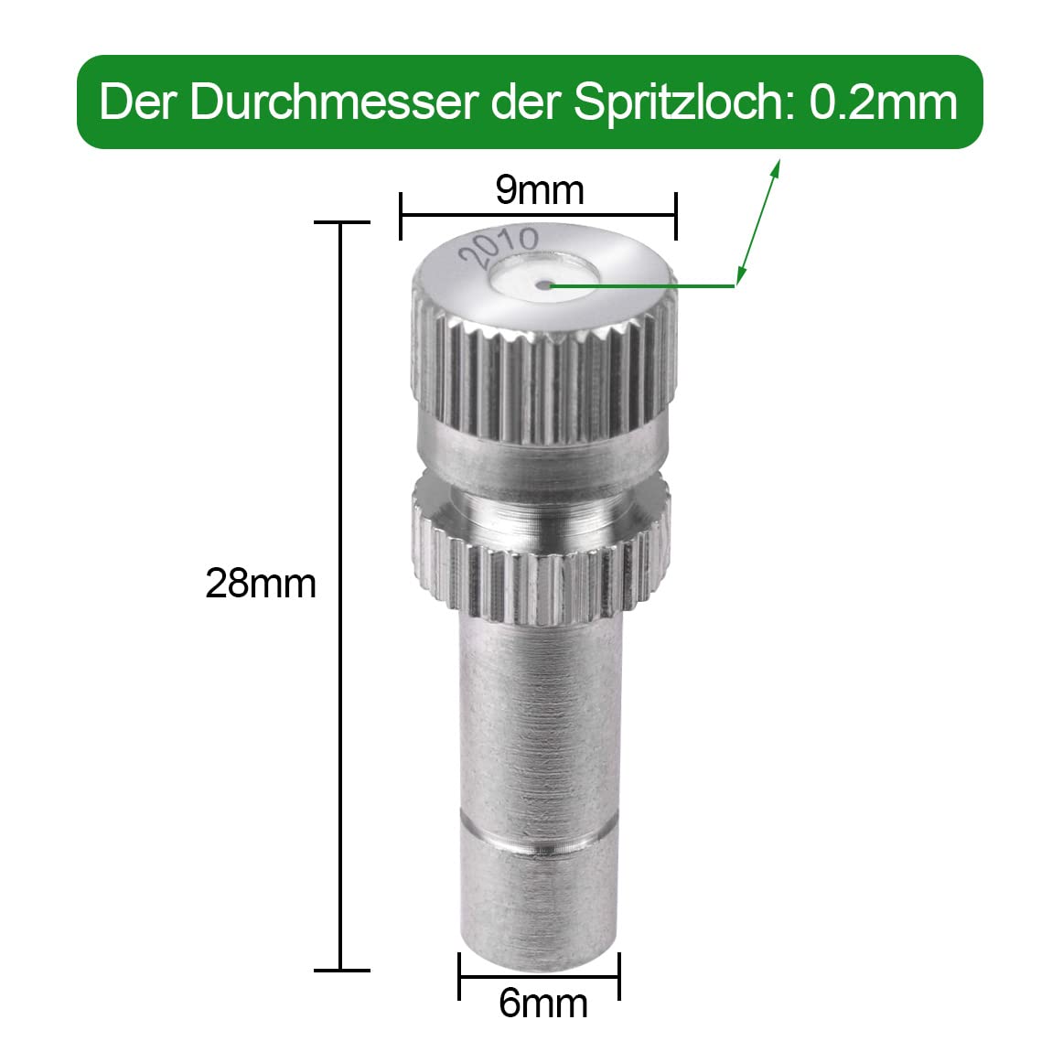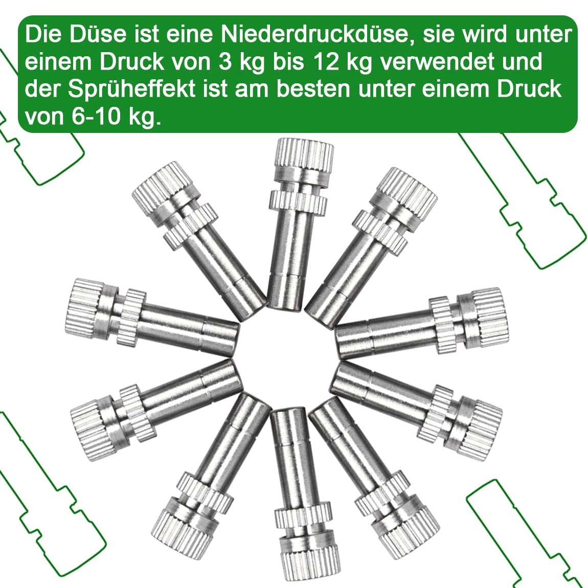 Für perfekte Nebeleffekte und effiziente Kühlung! Diese 5 Messing-Nebeldüsen mit winziger 0,15mm Öffnung erzeugen einen ultrafeinen Nebel, der ideal für Gewächshäuser, Landschaftsbau oder Außenkühlsysteme ist. Aus hochwertigem Messing gefertigt, sind sie extrem langlebig und korrosionsbeständig. Mit 3/16 Zoll Gewinde passen sie in die meisten Standard-Systeme. Perfekt für die Staubunterdrückung auf Baustellen, zur Kühlung an heißen Tagen oder für atmosphärische Nebeleffekte im Garten. Die Installation ist denkbar einfach - einfach eindrehen und schon kann der Nebelspaß beginnen. Wichtig: Bei hartem Wasser können die Düsen mal verstopfen, daher regelmäßig reinigen für optimale Leistung. Ein Must-Have für jeden Hobby-Gärtner oder Profi im Landschaftsbau!