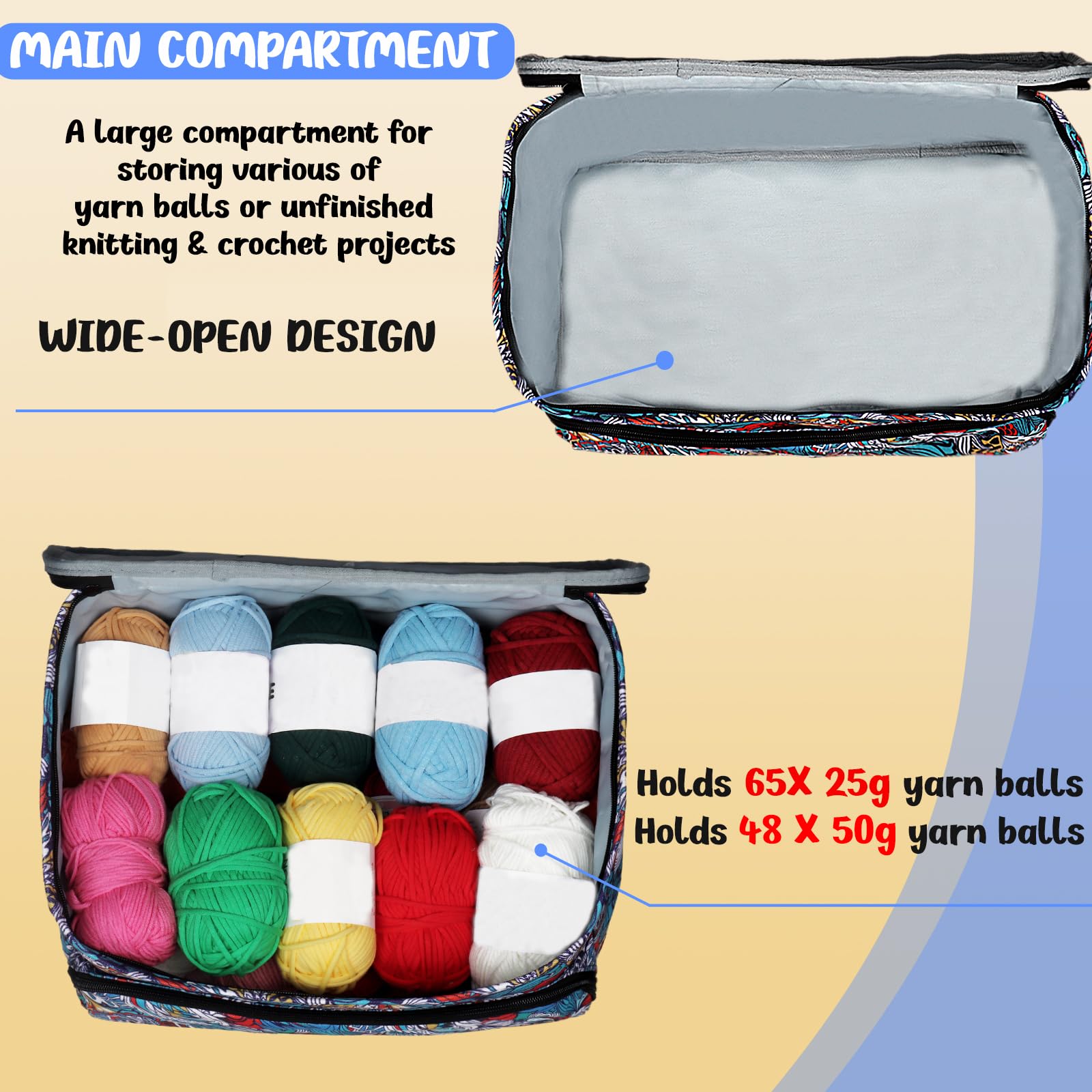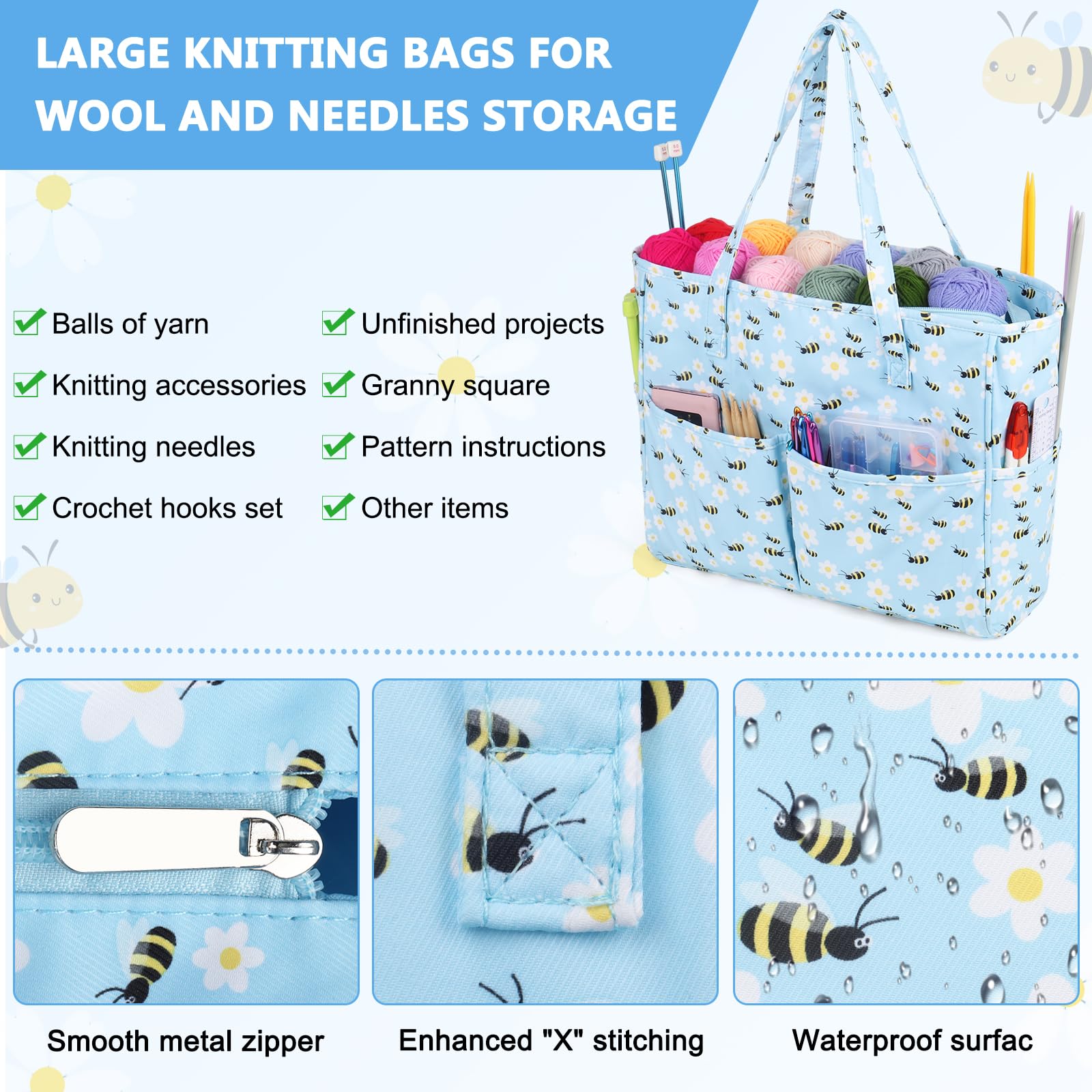 Alles für dein Strick-Hobby in einer Tasche! Die Aeelike Stricktasche in hübschem Blau mit Bienen-Muster ist dein neuer bester Freund. Mit 3 praktischen Garnlöchern - du kannst direkt aus der Tasche stricken, ohne dass die Wolle schmutzig wird. Maße: 36x19x15cm - groß genug für 10-20 Wollknäuel! Aus wasserdichtem 600D Oxford-Stoff, super stabil. Die große Öffnung oben macht's leicht, an alles ranzukommen. Außentasche mit Reißverschluss für Nadeln bis 35cm. Leicht zu tragen am praktischen Griff. Perfekt für unterwegs - ob im Park, im Urlaub oder auf der Couch. Alles schön organisiert und griffbereit. Kein Suchen mehr nach Nadeln oder Wolle! Siehst du die süßen Bienen? Das Design macht einfach Laune! Ein tolles Geschenk für Strick-Fans. Endlich Ordnung in deinem Strick-Hobby! Einfach Wolle rein, Garn durch die Löcher - und losstricken! So macht Handarbeit Spaß!