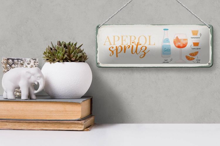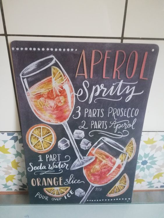Bring italienisches Dolce Vita in deine vier Wände! Dieses wunderschöne Aperol Spritz Blechschild im Retro-Design ist nicht nur dekorativ, sondern auch praktisch - denn es zeigt das originale Rezept für den beliebten Cocktail. Mit den Maßen 30x20cm ist es der perfekte Eyecatcher für deine Bar, Küche oder Wohnzimmer.