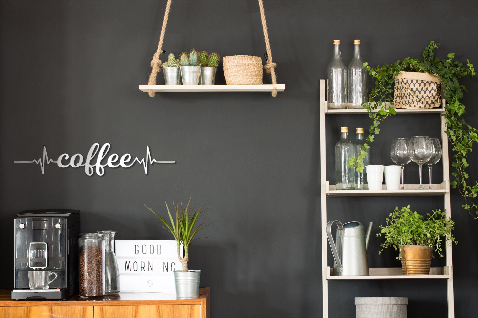 Einfach hinstellen und sofort hat deine Kaffeeecke das gewisse Etwas! Perfekt als Geschenk für Kaffeeliebhaber oder zur Verschönerung des eigenen Homes. Ob in der Küche, im Wohnzimmer oder im Homeoffice - dieses Schild sorgt immer für gemütliche Kaffeestimmung!