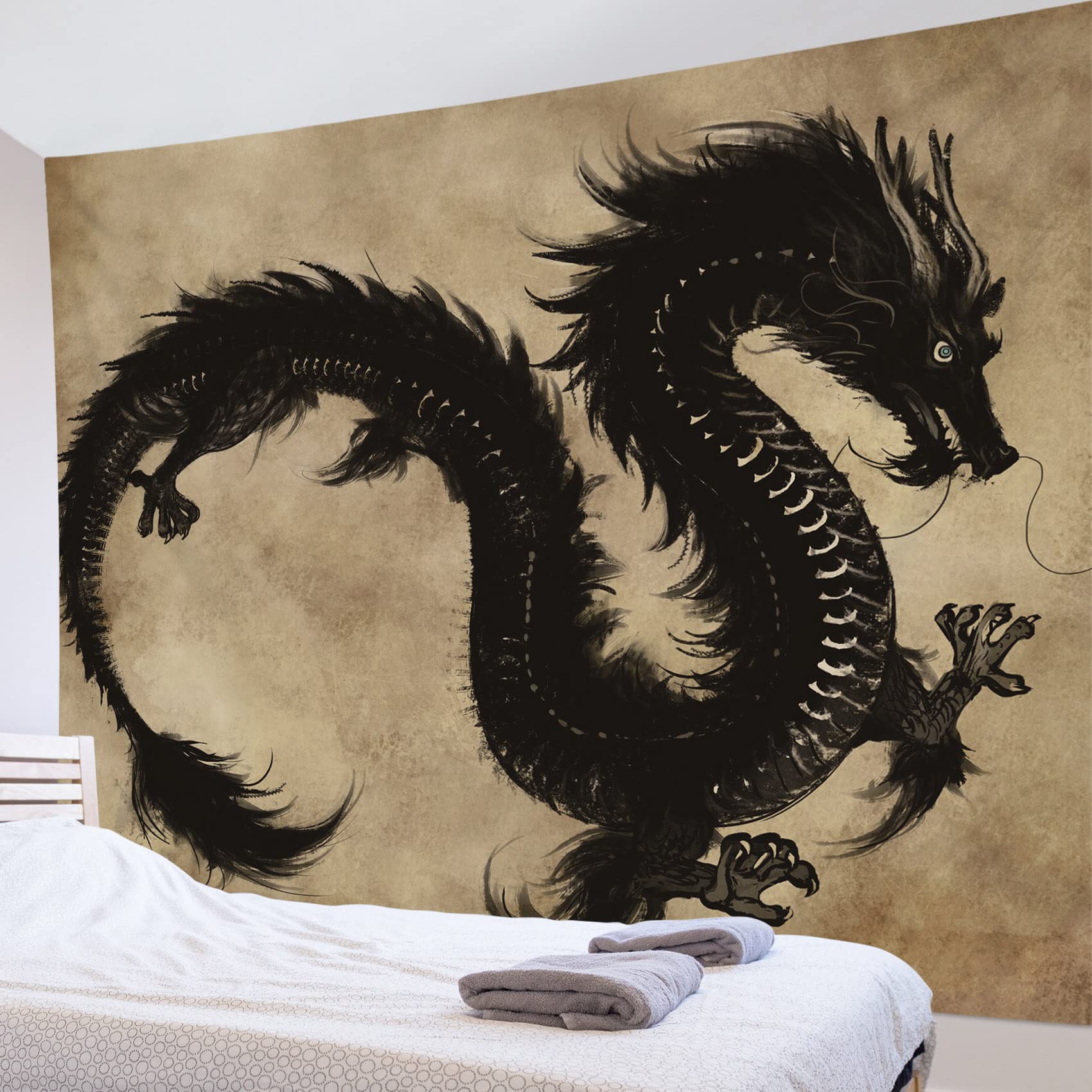 Verwandle deine Wände in ein Kunstwerk! Dieser atemberaubende Wandteppich mit chinesischem Drachen-Motiv bringt asiatisches Flair in dein Zuhause. Aus hochwertigem Polyester-Samt gefertigt, fühlt sich der Teppich nicht nur luxuriös weich an, sondern ist auch extrem langlebig. Die pfirsichfarbene Samt-Oberfläche sorgt für eine edle Optik und einen hervorragenden Faltenwurf. Mit den Maßen 152,4x101,6cm ist er perfekt für große Wandflächen im Wohnzimmer, Schlafzimmer oder sogar im Außenbereich. Das Komplett-Set enthält alles für die einfache Montage: drei Clip-Haken, zwei 3m Klebestreifen und drei wandschonende Haken. So kannst du den Teppich ganz ohne Bohren aufhängen! Die Pflege ist denkbar einfach - einfach im Schonwaschgang waschen und bei niedriger Temperatur bügeln. Perfekt für Partys, Feiern oder als dauerhafte Wanddekoration. Ein absoluter Hingucker, der garantiert Gesprächsthema wird!