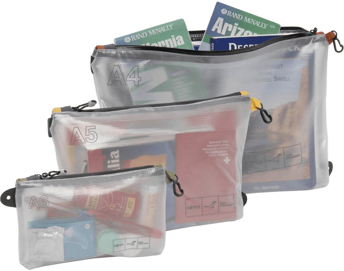 Ordnung muss sein - und zwar stylish! Dieser Exped Vista A6 Organizer in Grau mit neon-gelben Akzenten ist dein bester Freund für Organisation. Das transparente Netzgewebe lässt dich sofort erkennen, was wo ist - kein langes Suchen mehr! Mit robustem Reißverschluss und praktischen Karabiner-Ösen zum Befestigen an Rucksäcken oder Taschen. Maße: 21x12x2 cm - perfekt für Stifte, Elektronik-Zubehör, Toilettenartikel oder Reisedokumente. Nur 25g leicht, aber erstaunlich stabil. Wasseraweisend schützt er deine Sachen vor leichter Feuchtigkeit. Ob im Alltag, auf Reisen oder beim Outdoor-Abenteuer - dieser Organizer hält alles zusammen, was du brauchst. Der integrierte Griff macht das Tragen besonders komfortabel. Endlich alles im Blick und griffbereit! Perfekt für Pendler, Reisende und Organisations-Fans.
