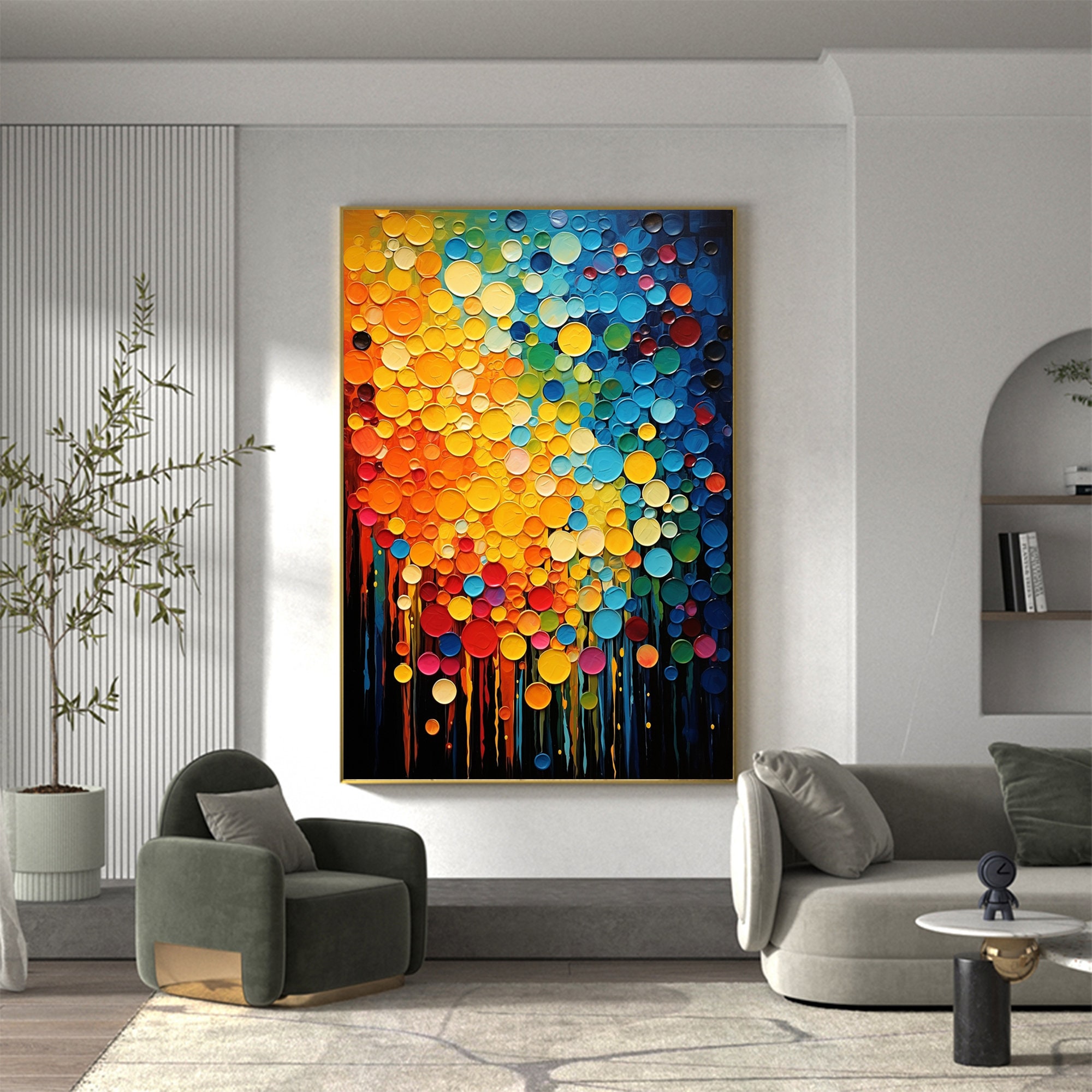 Wow, was für ein Statement für deine Wand! Dieses abstrakte Ölgemälde in Grau mit goldener Textur ist einfach der Hammer. Mit 100x200cm (39x79 Zoll) ist es ein echter Hingucker. Professionell auf 2cm dicken Keilrahmen aufgespannt - einfach auspacken und aufhängen! Die Farben sind intensiv und lichtbeständig, die Qualität erstklassig. Perfekt fürs Wohnzimmer, Büro oder als besonderes Geschenk. Wird sicher verpackt geliefert und jede Leinwand wird vor dem Versand geprüft. Verleiht jedem Raum sofort mehr Stil und Persönlichkeit. Ein absolutes Must-have für alle, die moderne Kunst lieben!