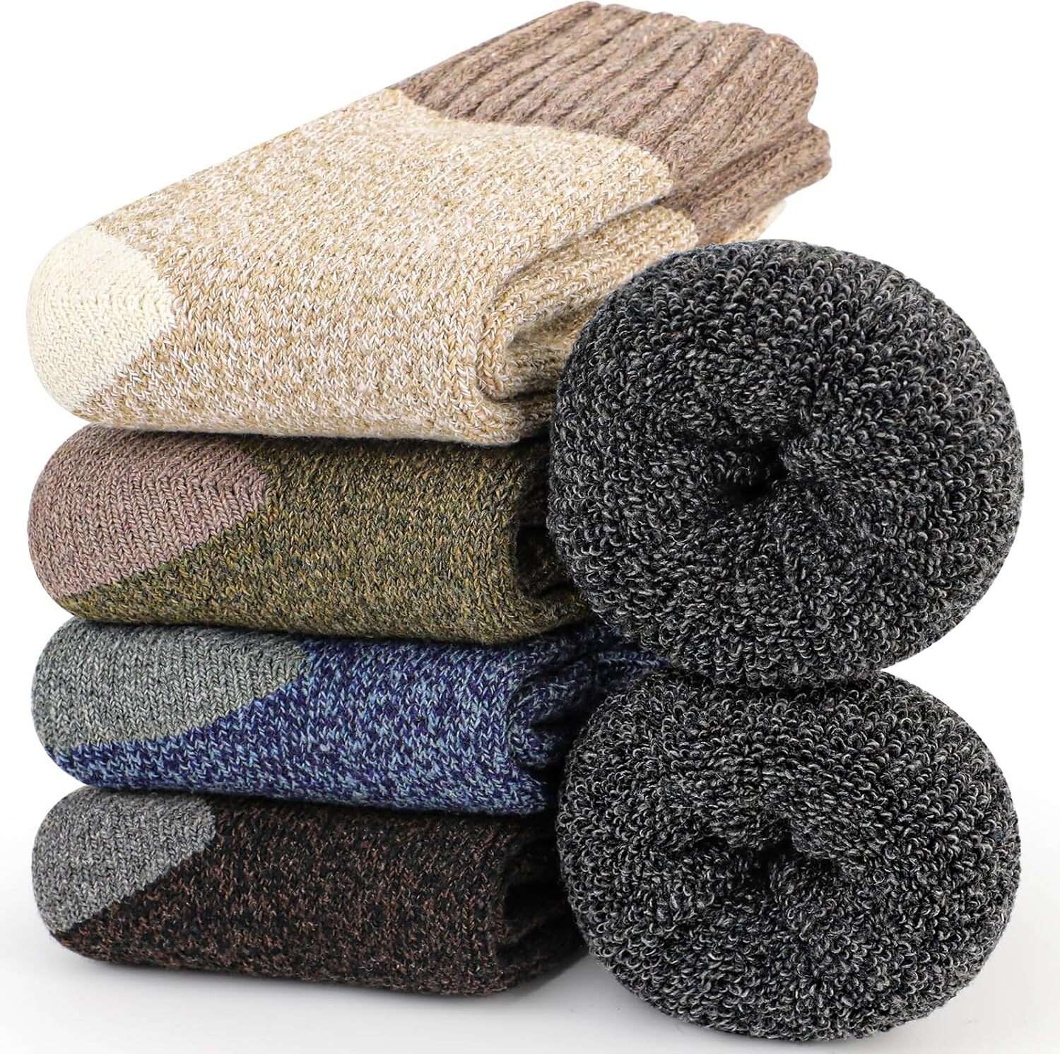 Eingekuschelt durch den Winter! Dieses 5er-Pack Thermosocken von Harlamvar hält deine Füße auch bei frostigen Temperaturen schön warm. Aus weicher Wolle, Polyester und Elasthan gefertigt, sind sie super atmungsaktiv und bequem. Jedes Paar hat ein anderes Muster - so hast du Abwechslung und Style zugleich. Die Socken passen den Größen 35-40 und haben ein elastisches, geripptes Bündchen das nicht einschneidet. Besondere Features: Y-förmige Ferse für perfekten Sitz und verstärkte Zehen für extra Langlebigkeit. Perfekt für kalte Tage im Büro, beim Wandern, zu Hause auf dem Sofa oder beim Winterspaziergang. Einfach jeden Tag ein neues Paar - so bleibst du immer stylisch und warm! Ein tolles Geschenk für dich selbst oder deine Liebsten.