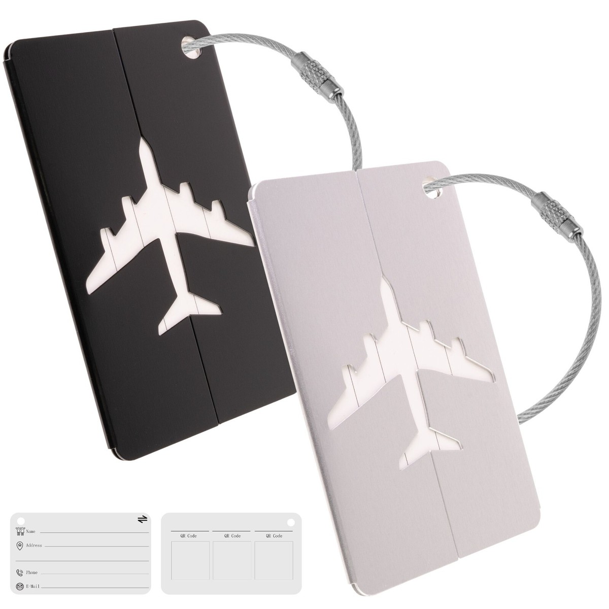 Nie wieder verwechselte Koffer! Dieses 6er-Set bunter Aluminium-Anhänger macht dein Gepäck unverwechselbar. Jeder Anhänger hat ein Adressfeld für deine Kontaktdaten - geschützt durch einen Schraubverschluss. Das Flugzeug-Design ist niedlich und praktisch. Aus robuster Aluminiumlegierung, 7,5x4,5cm groß. Leicht und platzsparend. Perfekt für Koffer, Rucksäcke und Taschen. Einfach beschriften, verschließen und dein Gepück ist sicher gekennzeichnet!