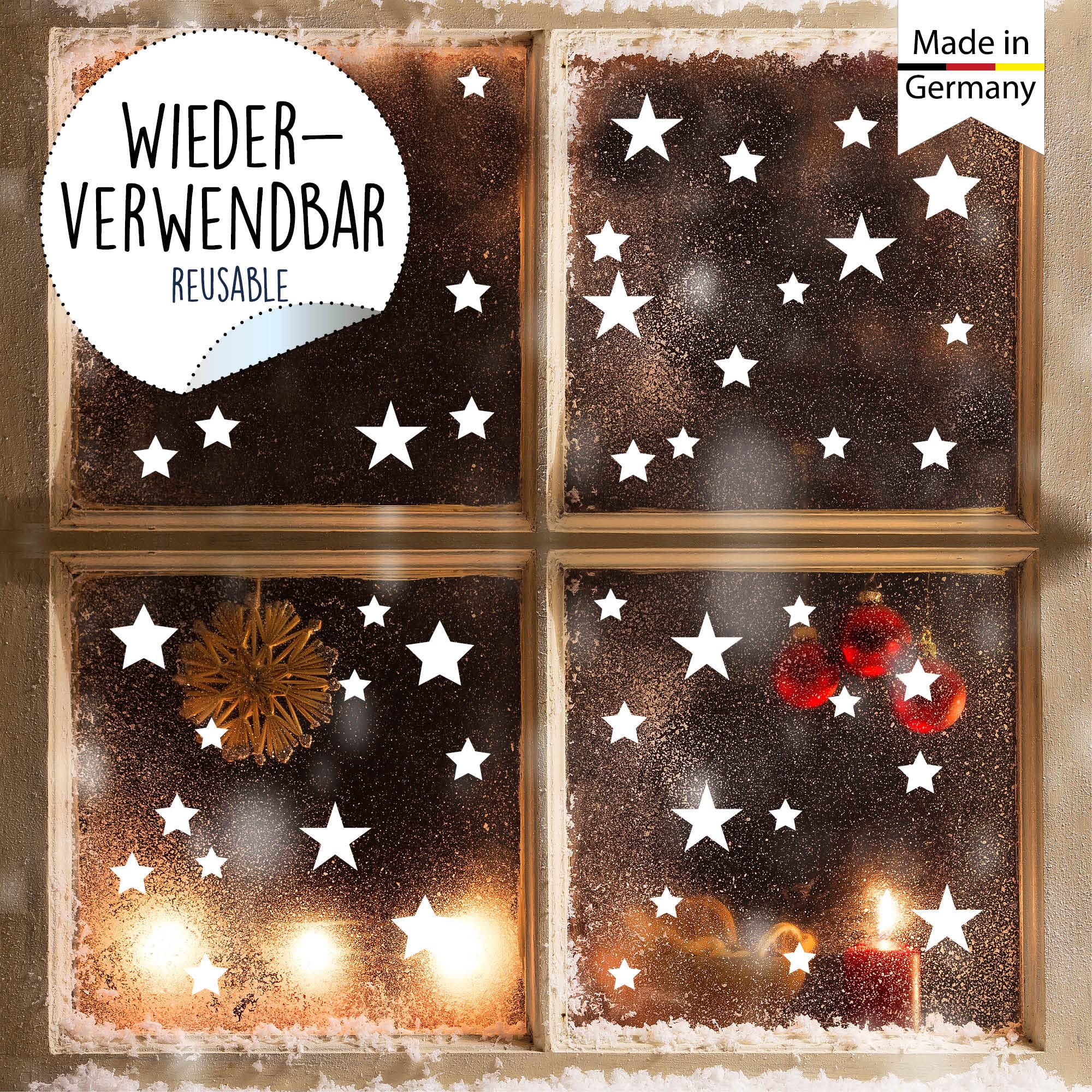 Wandtattoo Loft Weihnachts Sterne Fensterbilder - 46 Sticker, Wiederverwendbar