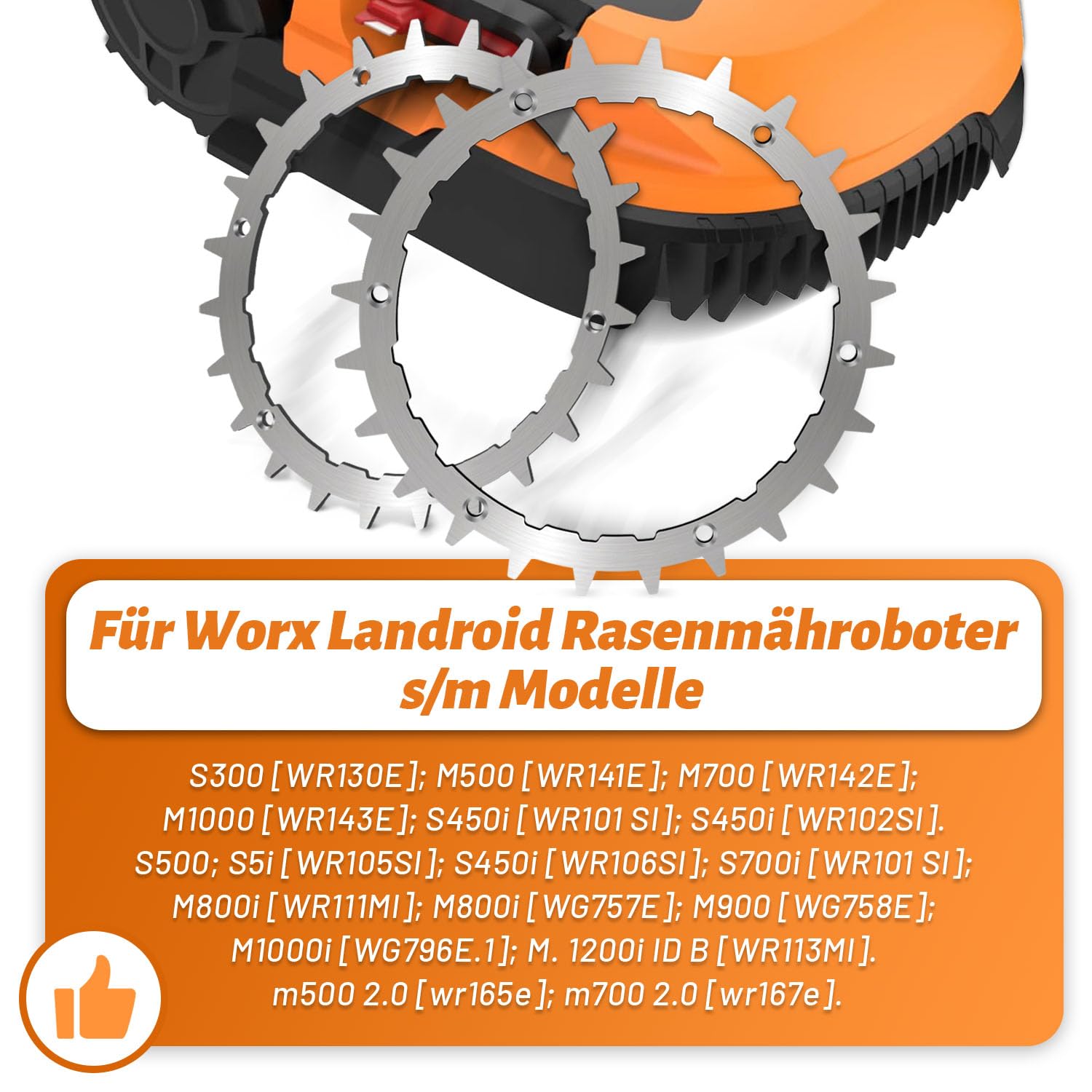 Hey, alle Worx Landroid Besitzer - diese Spikes sind ein echter Game-Changer für euren Mähroboter! Speziell entwickelt für die S und M Serie, passen sie perfekt zu Modellen von S300 bis M1000i. \\n\\nDie 205mm langen schwarzen Spikes sind aus hochwertigem Kunststoff und mega langlebig. Sie verbessern die Traktion deines Mähroboters enorm - besonders auf nassem Rasen oder an Hängen! Kein lästiges Durchdrehen oder Steckenbleiben mehr. \\n\\nDas Beste: Die Spitzen durchdringen den Boden und belüften dabei deinen Rasen - doppelter Nutzen also! Der Einbau ist super einfach: Einfach mit den mitgelieferten 14 Schrauben befestigen und schon kann's losgehen. \\n\\nEgal ob sandiger Boden oder feuchtes Gras - mit diesen Spikes hat dein Mäher immer genug Grip. Und nach dem Einsatz einfach mit einer Drahtbürste reinigen, damit alles sauber bleibt. \\n\\nWeniger Ausfallzeiten, bessere Performance - was will man mehr? Dein Rasen wird es dir danken, und du sparst dir jede Menge Ärger!