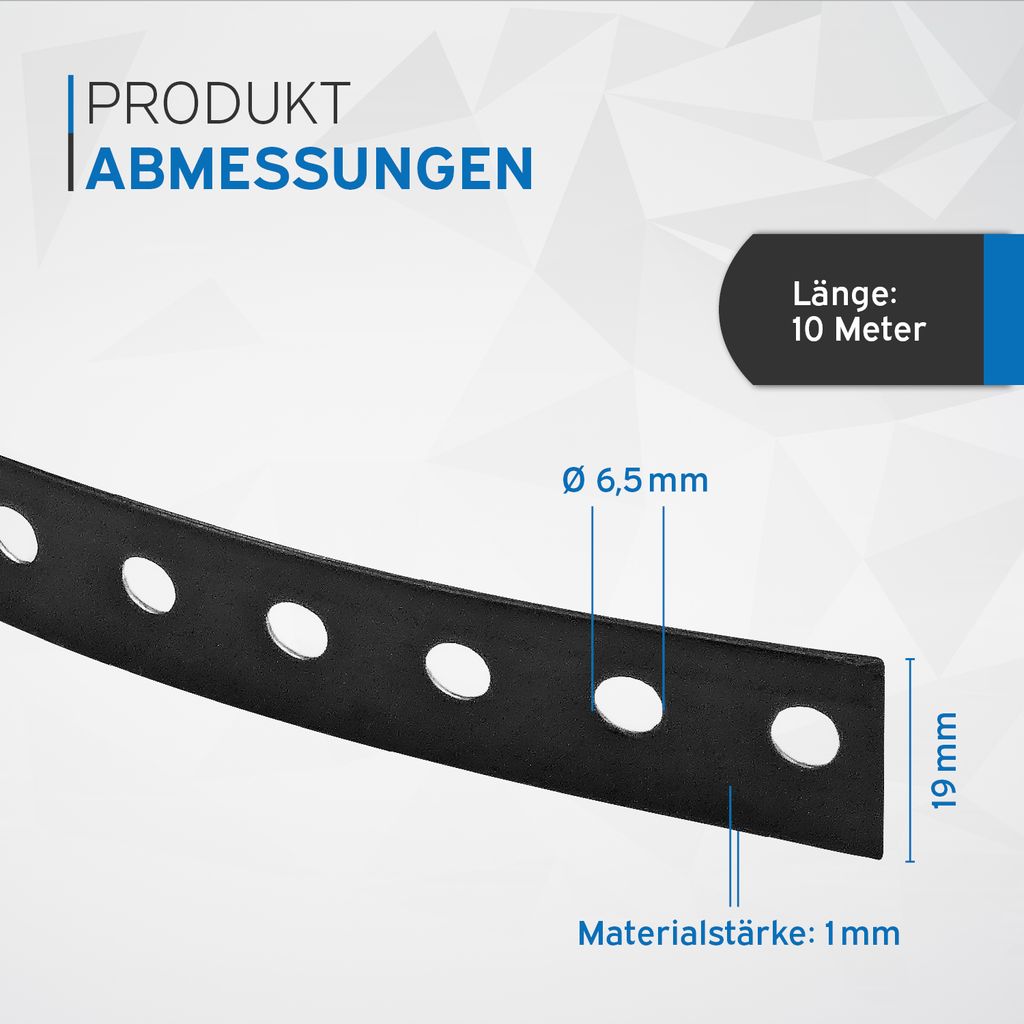 Dieses Metallmontageband ist der absolute Allrounder für jede Werkstatt! Mit 10 Metern Länge hast du immer genug Material parat für alle möglichen Befestigungen. Das Besondere: Der Stahl ist verzinkt UND kunststoffbeschichtet - das macht ihn super robust gegen Rost und Witterung. Mit 14 mm Breite und 3 mm Höhe ist es stabil genug für die meisten Projekte, aber dennoch flexibel zu verarbeiten. Die 5,2 mm Löcher im Abstand von etwa 25 mm machen die Montage zum Kinderspiel. Ob im Innen- oder Außenbereich, für Regale, Rohre oder andere Befestigungen - dieses Band hält, was es verspricht. Einfach abmessen, abschneiden und losschrauben!