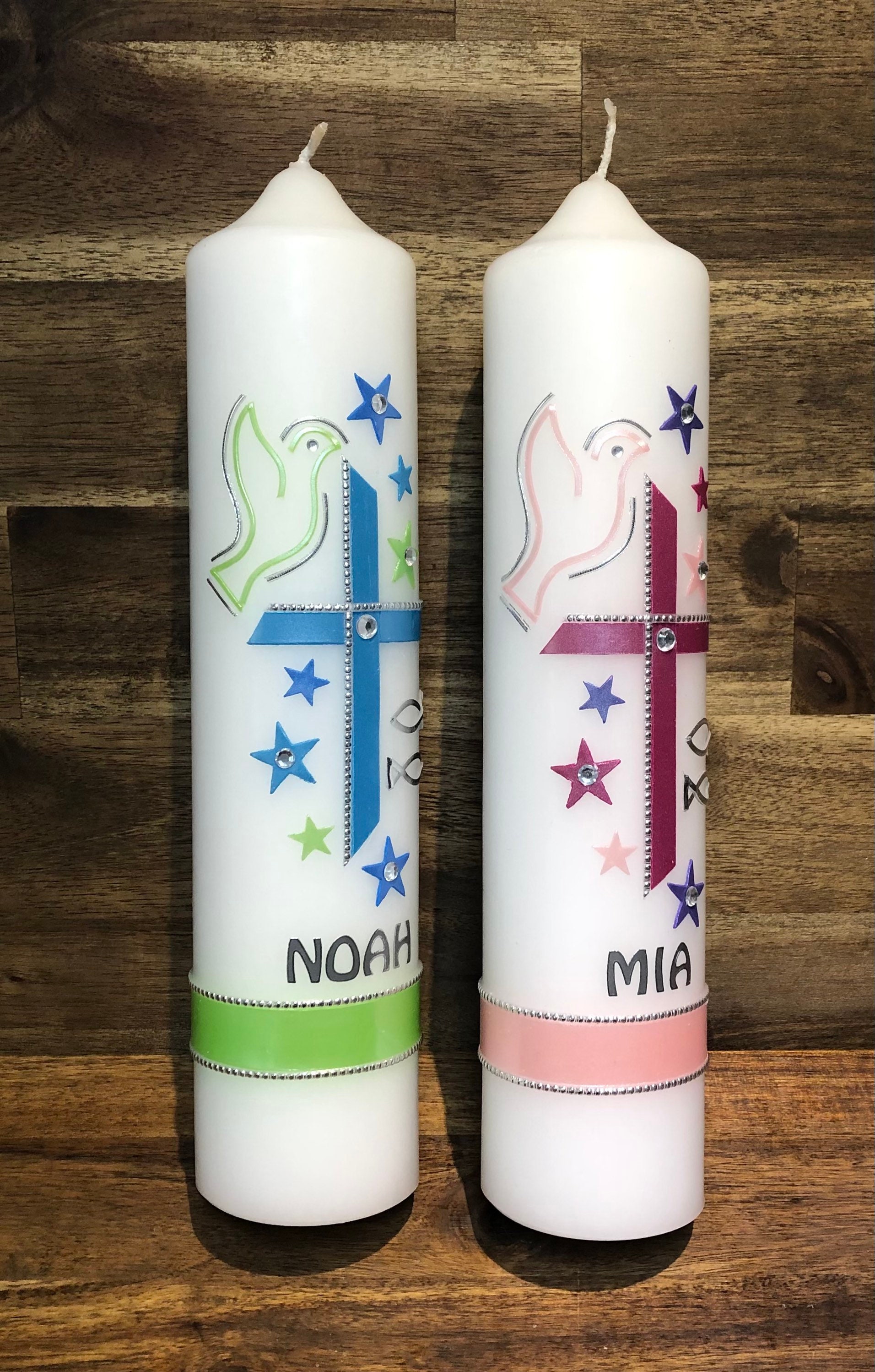 Oh, diese Taufkerze 'Annabelle' ist einfach wunderschön! In zartem Rosa mit einem dekorativen Kreuz-Motiv wird sie zu einem besonderen Erinnerungsstück an den großen Tag. Du kannst sie persönlich gestalten lassen - mit dem Namen des Täuflings, dem Taufdatum und einem individuellen Spruch. Die Kerze wird mit modernster Drucktechnologie bedruckt, sodass die Farben brilliant leuchten und lange halten. Mit 25 cm Höhe und 8 cm Durchmesser ist sie perfekt für den Tisch oder Altar. Hergestellt aus hochwertigem Paraffinwachs mit RAL- und Dekra-Zertifizierung, brennt sie gleichmäßig ab und tropft nicht. Du kannst sie auch im Set mit Patenkerzen bestellen - in verschiedenen Kombinationen von 1x Taufkerze bis hin zu 1x Taufkerze plus 4x Patenkerzen. Jede Kerze wird mit Liebe in Deutschland produziert und ist ein Symbol für Liebe und Licht. Ein wirklich besonderes Geschenk, das noch Jahre später an diesen wichtigen Moment erinnert. Die Lieferung erfolgt schnell, sodass du dich ganz auf die Vorbereitungen konzentrieren kannst. Einfach zauberhaft!