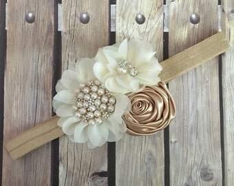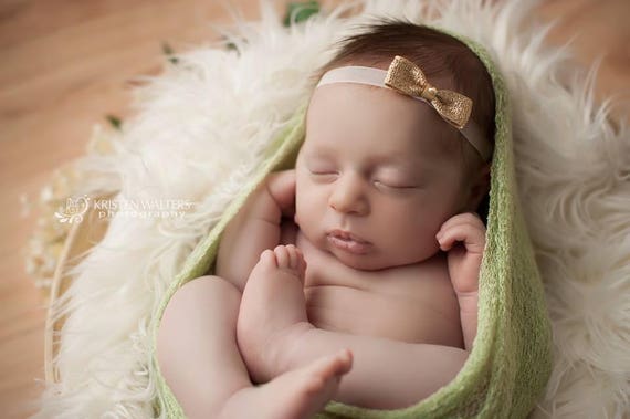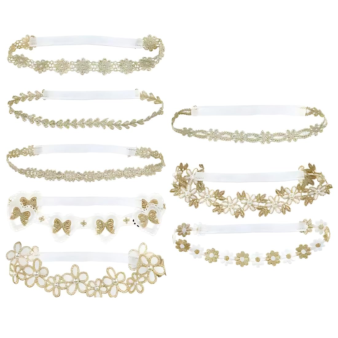 Baby Haarband Mädchen Gold Spitze - Elastisches Stirnband Für Taufe & Fotos