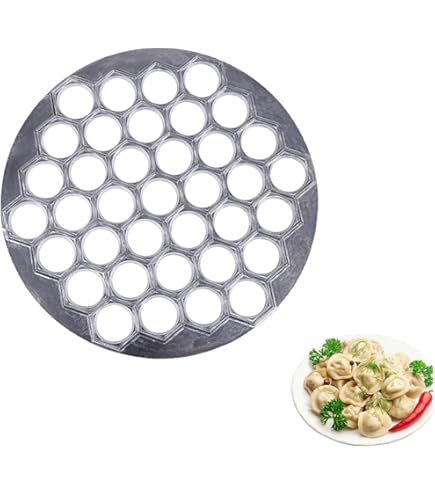 Pelmeni-Fans, ihr werdet diesen Knödel-Maker lieben! Mit 61 Löchern kannst du auf einmal eine Riesenportion Knödel machen - super praktisch und zeitsparend! Aus robuster Aluminiumlegierung gefertigt, die nicht rostet und sich nicht verformt. Die feinen Löcher sorgen für gleichmäßige, schön geformte Knödel - jedes einzelne sieht perfekt aus! Nicht nur für russische Pelmeni geeignet, sondern auch für Ravioli, Maultaschen und andere Teigtaschen. Die Oberfläche ist glatt und leicht zu reinigen - per Hand oder in der Spülmaschine. Mit 33,5cm Durchmesser und etwa 981g Gewicht liegt er gut in der Hand. Mach deine eigenen Knödel wie ein Profi - viel günstiger und leckerer als gekaufte! Perfekt für Familien, Partys oder einfach wenn du Vorräte anlegen willst. Einfach Teig drauf, Füllung in die Löcher, zweiten Teig drauf und ausstechen - schon hast du perfekte Knödel!
