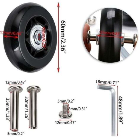 Kaputte Kofferräder? Hier kommt die Lösung! 2 hochwertige Ersatzräder aus Gummi mit 75mm Durchmesser und 24mm Breite. Mit ABEC-7 608ZZ Kugellagern für super leise und smoothie Laufeigenschaften. Im Lieferumfang sind beide Achslängen dabei (35mm und 40mm), plus Schrauben, Unterlegscheiben und Schraubenschlüssel für einfachen Einbau. Die Gummimischung ist verschleißfest und hält auch schweres Gepäck problemlos aus. Einfach die alten Räder abmontieren und diese drauf - schon rollt dein Koffer wieder wie neu! Perfekt für Reisekoffer, Trolleys und Transportwagen. Nie wieder schleppenden Koffer durch den Flughafen ziehen! Mit den beiden mitgelieferten Achslängen passt das Set für die meisten gängigen Koffermodelle.
