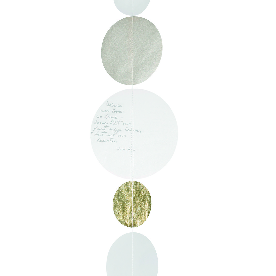 Wunderschöne Deko für deine Wände! Diese Kreiskette mit goldenem Blatt-Motiv verwandelt jeden Raum in eine gemütliche Wohlfühloase. Mit einer Länge von 104cm ist sie perfekt für leere Wandflächen. Hergestellt aus Transparentpapier, weißem Papier und goldenem Hotfoil sehen die Blätter richtig edel aus. Der matte Goldton erinnert an einen herbstlichen Waldspaziergang - einfach traumhaft! Einfach an der Wand befestigen und schon strahlt dein Zimmer Wärme und Gemütlichkeit aus. Passt zu vielen Einrichtungsstilen und lässt sich super mit anderen Deko-Elementen kombinieren. Ob im Wohnzimmer, Büro oder Café - diese Kette verbreitet überall eine einladende Atmosphäre. Hol dir jetzt dieses stylische Accessoire und verleihe deinen Räumen eine persönliche Note!