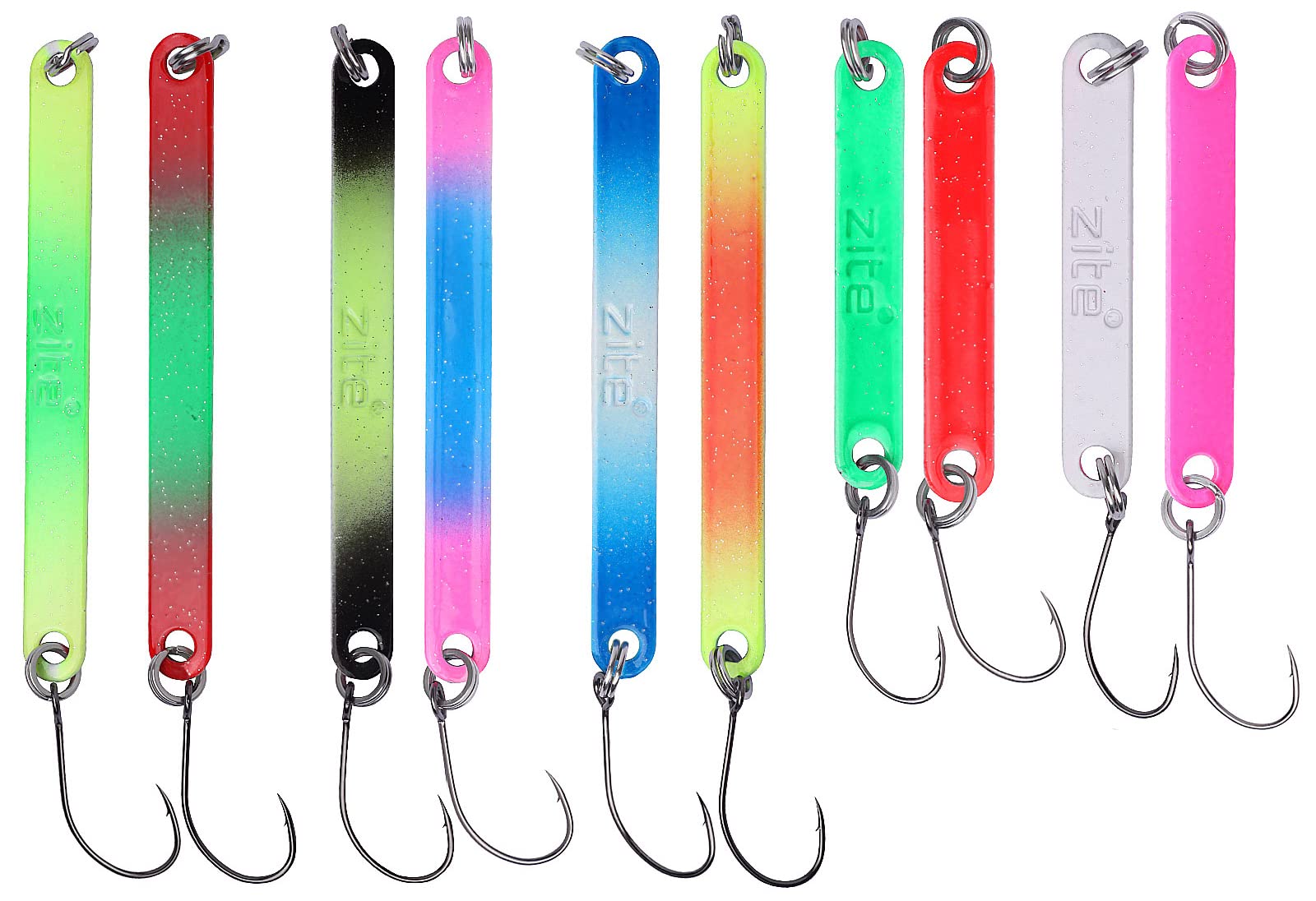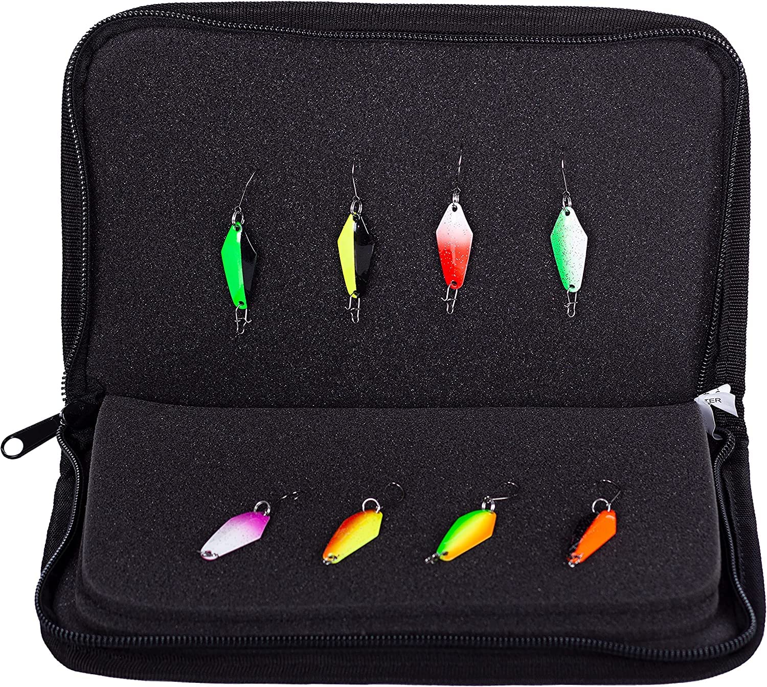 Angelfreunde, aufgepasst! Dieses Zite Köder-Set ist der absolute Bringer für Forellen und andere Raubfische. Mit 27 Ködern im Set - da ist für jede Situation der richtige Blinker dabei! Die wiegen zwischen 0,8g und 3,5g - perfekt für Ultra Light Angeln. Besonders cool: Viele Köder sind UV-aktiv und leuchten selbst im trüben Wasser oder bei schlechtem Wetter. Die silbernen und goldenen Blinker glänzen in klarem Wasser, die Neon-Farben bringen's bei Dunkelheit. Jeder Köder hat scharfe Einzelhaken mit Widerhaken - weniger Fehlbisse! Und das Beste: Die praktische Ködermappe aus robustem Polyester hat Schaumstoff-Einlagen, wo du alle Köder sicher einhängen kannst. Mit Reißverschluss - nichts fällt raus! Plus 25 Snaps für einfache Montage. Ob du an Flüssen, Seen oder Bächen angelst - mit diesem Set bist du bestens ausgerüstet. Die Köder imitieren kleine Fische perfekt und locken selbst vorsichtige Forellen an. Einfach die Mappe einpacken und los geht's zum nächsten Angel-Abenteuer! Perfekt für Anfänger und Profis gleichermaßen.