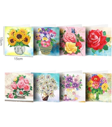 Bastel-Freude pur! Mit diesen 6 DIY Diamond Painting Karten kreierst du einzigartige Grußkarten für Geburtstage, Weihnachten oder einfach so. Jede Karte misst 15x15cm und kommt mit allem was du brauchst: Spezialstift, SortierTablett und die bunten Diamanten in verschiedenen Farben. Einfach die Diamanten entsprechend der Symbole aufkleben und watch wie dein Kunstwerk entsteht! Perfekt für entspannende Abende, als Geschenk von Herz zu Herz oder kreative Aktivität mit Kindern. Die fertigen Karten sind echte Hingucker und zeigen dem Empfänger, wie viel Mühe du dir gemacht hast. Tauche ein in die Welt des Diamond Paintings und genieße die meditative Wirkung dieses kreativen Hobbys!