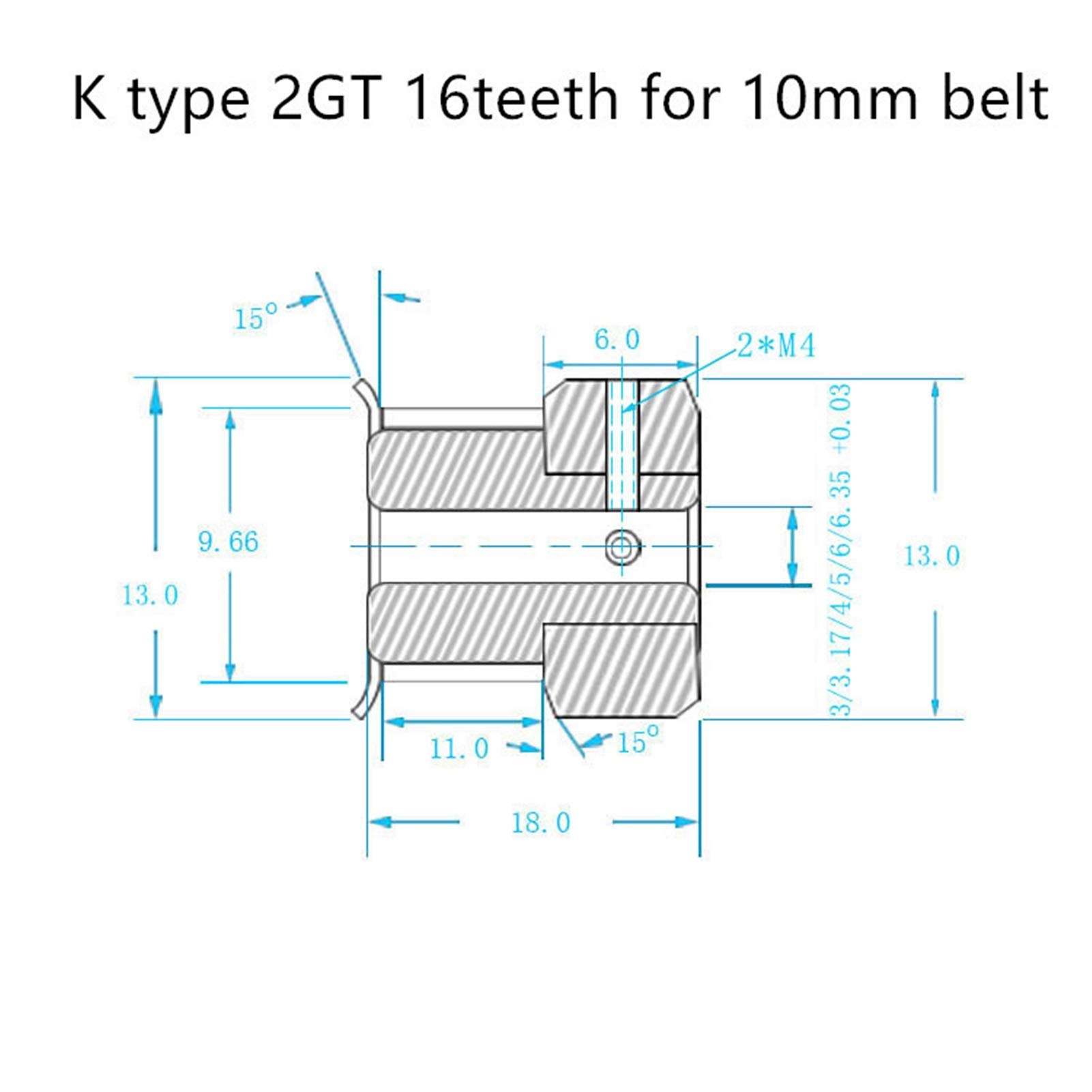 Wichtiges Ersatzteil für deinen 3D-Drucker! Diese GT2 Riemenscheibe mit 16 Zähnen ist perfekt für präzise Bewegungen. Aus Aluminiumlegierung gefertigt - leicht und langlebig. Erhältlich mit verschiedenen Bohrungen: 3.17mm, 4mm, 5mm, 6mm oder 6.35mm - da findest du sicher die passende für deine Maschine! Auch in verschiedenen Breiten erhältlich: 6mm, 9mm, 10mm oder 15mm. Die 2mm Teilung sorgt für einen sauberen, rutschfesten Lauf. Perfekt für Fräsmaschinen, CNC-Motoren, Bohrmaschinen und natürlich 3D-Drucker. Die Zahnform greift optimal in den Synchrongürtel - kein Durchrutschen mehr! Einfach zu montieren und sofort einsatzbereit. Verbessere die Präzision deiner Maschine mit dieser qualitativ hochwertigen Riemenscheibe. Auch für andere Maschinen zur Kraftübertragung geeignet. Einfach bestellen, einbauen und von der verbesserten Performance profitieren! Professionelle Qualität für Hobby und Industrie.