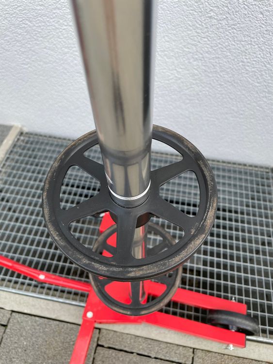 Endlich Ordnung im Garage oder Keller! Dieser HEYNER Felgenbaum ist die perfekte Lösung für die Lagerung deiner Reifen. Bis zu 4 Räder mit bis zu 18 Zoll Durchmesser und 285mm Breite finden hier platzsparend und sicher ihren Platz. Mit einer Belastbarkeit von bis zu 100kg hält er auch schweren Reifen problemlos stand. Das Beste: Er ist fahrbar! Mit Lenkrolle und Feststellbremse kannst du ihn einfach dorthin schieben, wo du Platz hast. Die ergonomischen Softgriffe machen das Bewegen super bequem. Im Lieferumfang ist sogar ein hochwertiges Staubschutzcover (90x150cm) enthalten - so bleiben deine Reifen sauber und geschützt. Aus robustem Stahl gefertigt, ist dieser Felgenbaum ein echter Dauerbrenner. Die Montage ist denkbar einfach und schnell erledigt. Silber-schwarzes Design sieht dabei noch richtig gut aus. Ob Sommer- oder Winterreifen - mit diesem Felgenbaum hast du immer Ordnung und deine Reifen sind optimal geschützt. Einfach zusammenbauen und sich über mehr Platz freuen!