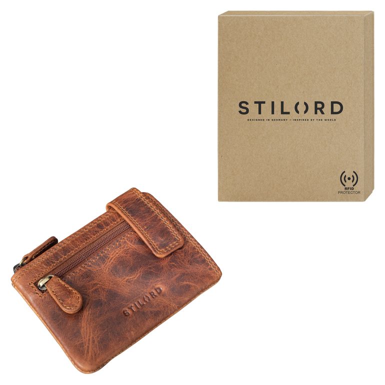 Alles Wichtige in einer Hand - diese geniale 3-in-1 Leder-Tasche von STILORD ist dein perfekter Alltagsbegleiter! Im praktischen Format von 8x11x2,5 cm findest du Platz für Schlüssel, Karten und Bargeld. Die 6 Schlüsselringe, 4 EC-Kartenfächer und das Geldscheinfach sind clever organisiert.