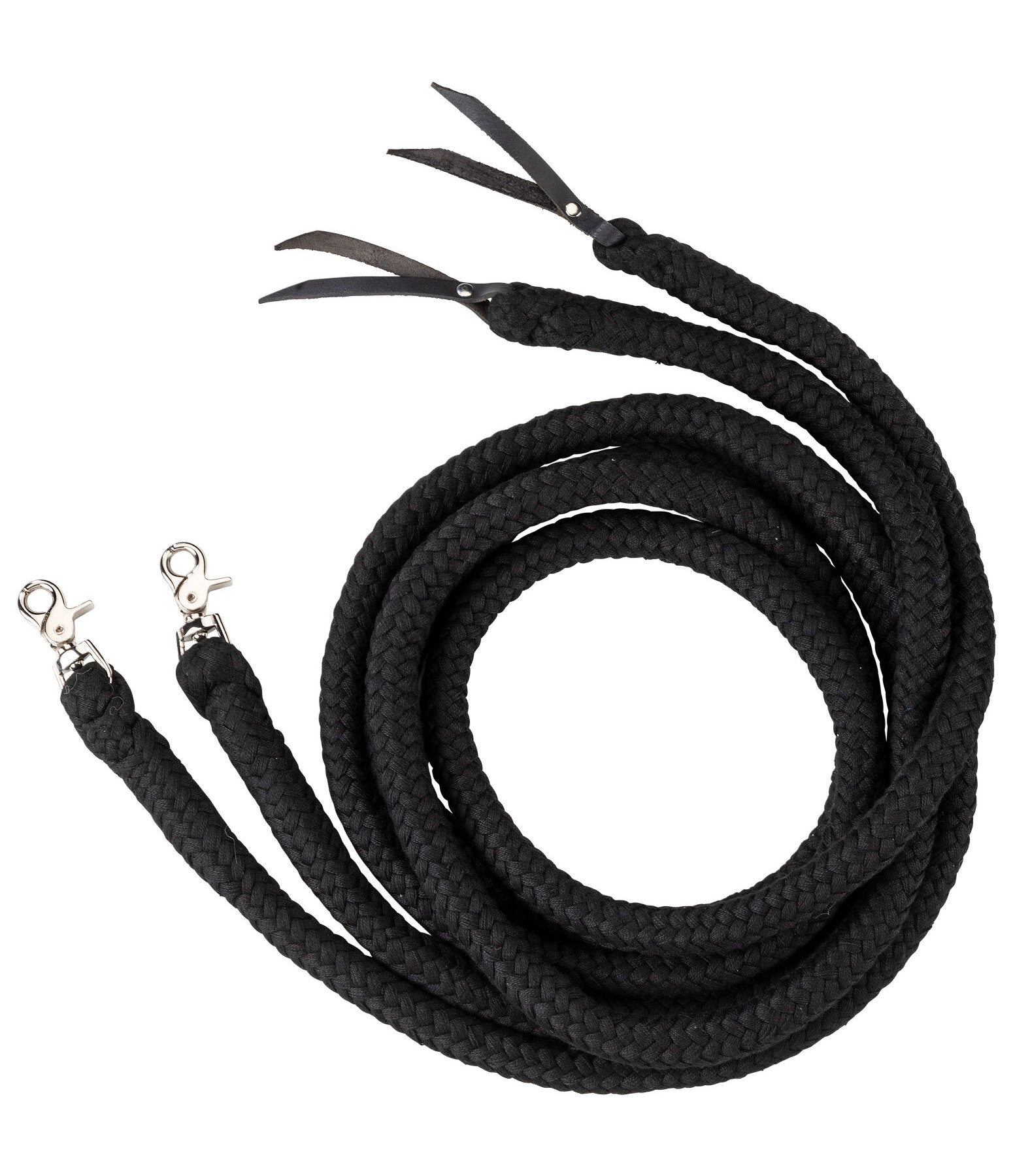 Echte deutsche Qualität für dein Pferd! Diese Baumwollzügel sind 3,00m lang, extra schwer und liegen super weich in der Hand. 20-fach geflochtene Baumwolle mit Polyesterkern - das gibt das perfekte Gewicht. Die Zügel fallen schön weich am Pferd und sind auch bei nasskaltem Wetter angenehm zu führen. Mit vernickelten Zügelsnaps (silber), Stärke ca. 1,9cm. Perfekt für Turnier und Freizeit - einfach universell einsetzbar. Farbe schwarz/grau/natur sieht total edel aus. Geschlossene Ausführung, es gibt auch geteilte Versionen. Direkt vom Hersteller - da weißt du was du kriegst! Einfach ein hochwertiges Zubehör das lange hält und sich gut anfühlt.