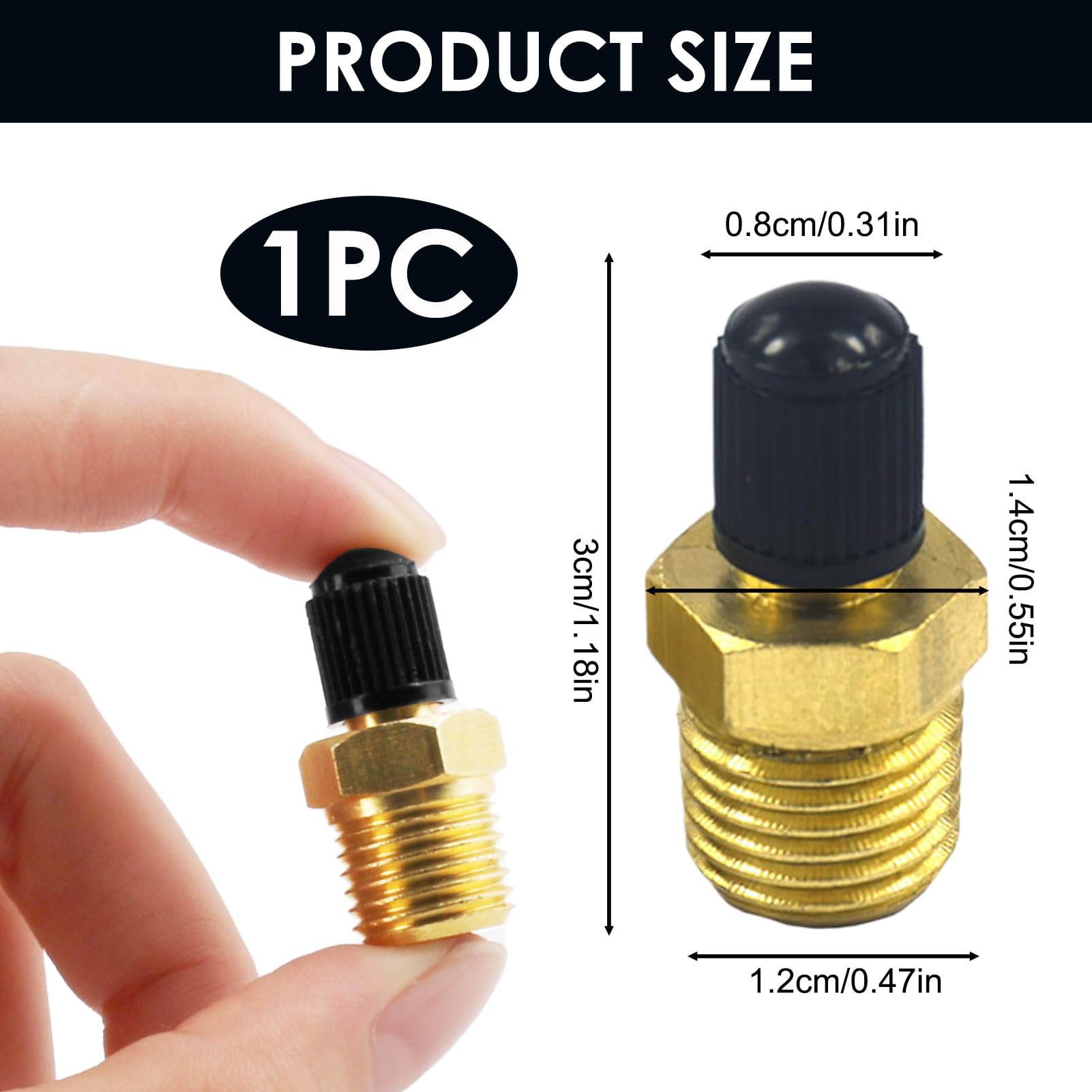 Hallo Handwerker und Luftkompressor-Besitzer! Diese 4 Messing-Tankfüllventile sind genau das richtige Zubehör für deine Druckluft-Anlage. Aus massivem Messing gefertigt - robust und langlebig. Mit 1/4 Zoll NPT MPT-Gewinde - passend für die meisten Luftkompressor-Tanks. Der Sechskantkörper (ca. 9/16 Zoll) ermöglicht eine einfache Installation mit Standard-Werkzeugen. Hält einem Arbeitsdruck von 200 psig stand und schafft sogar maximal 300 psig - also mehr als ausreichend für die meisten Anwendungen. Mit schwarzer Kunststoffkappe für sichere Abdichtung - kein lästiger Luftaustritt mehr! Gesamtlänge ca. 2,5cm, Gewindelänge 1cm und Schaftlänge 1,1cm - kompakt aber wirkungsvoll. Vielseitig einsetzbar - nicht nur für Kompressor-Tanks, sondern auch für andere pneumatische Systeme. Im praktischen 4er-Set - du hast immer Ersatz parat oder kannst mehrere Systeme gleichzeitig ausstatten. Ein Qualitäts-Zubehörteil das deine Druckluft-Anlage zuverlässiger macht. Nie wieder ärgern über undichte Ventile - mit diesen soliden Messing-Ventilen!