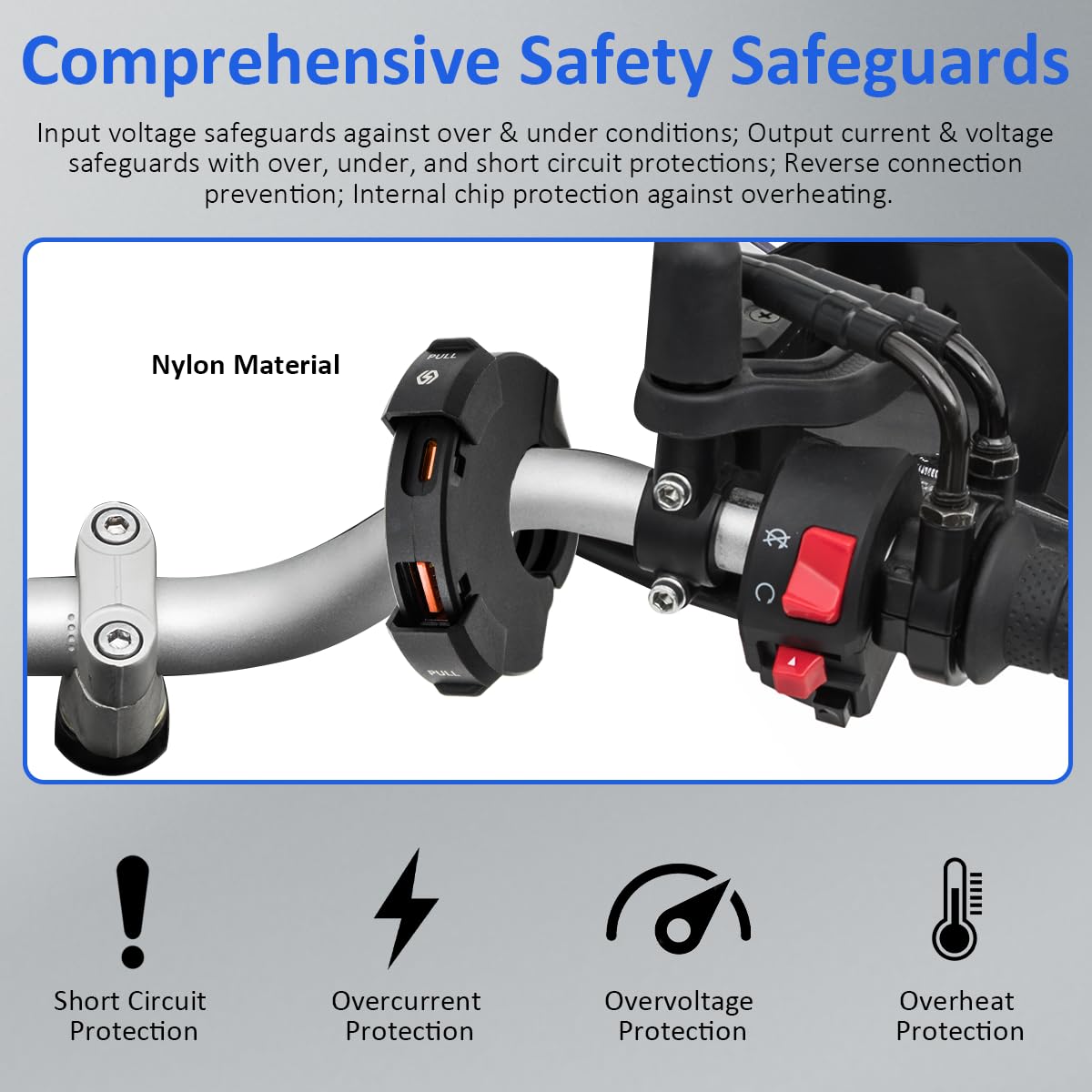 Endlich keine Sorge mehr um den Akku auf langen Touren! Diese USB-Ladebuchse für Motorrad und Boot ist ein echter Game-Changer. Mit satten 48W Gesamtleistung lädst du dein Smartphone, Navi oder andere Geräte richtig schnell - PD Type C schafft bis zu 30W, USB-A bis zu 18W. Das heißt: In 30 Minuten bist du oft schon bei 80% Ladung! Das Gehäuse ist richtig gut wasserdicht (IP65), die Abdeckkappe schützt die Buchsen bei Nichtgebrauch. Besonders clever: Die integrierte Spannungsanzeige zeigt dir an, ob deine Batterie in Ordnung ist. Einfach in den 22-24mm Halter stecken, Kabel anschließen und los geht's! Der intelligente Chip schützt vor Überhitzung, Kurzschluss und anderen Problemen. Ob für die nächste Motorrad-Tour, auf dem Boot oder im Quad - mit dieser Ladebuchse bist du immer connected!