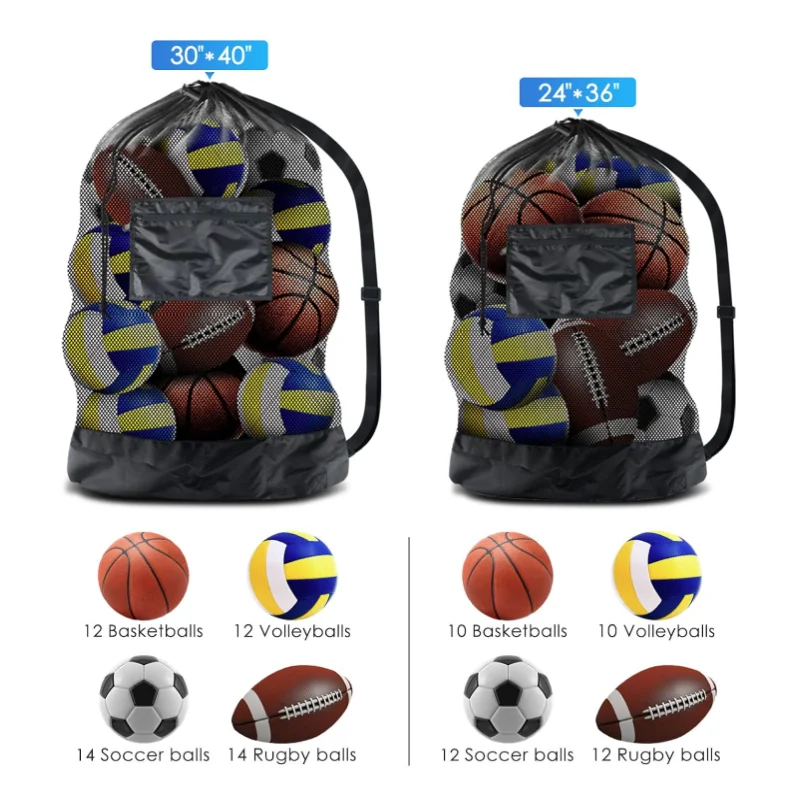 Endlich eine Tasche die all deine Bälle und Sportausrüstung fasst! Mit riesigen 99x76cm Maßen - da passt alles rein: Basketball, Volleyball, Fußball, Baseball und mehr. Das atmungsaktive Netz-Material lässt feuchte Sachen trocknen und du siehst sofort was drin ist. Mit praktischem Kordelzug - einfach zuziehen und fertig! Der verstellbare Schultergurt macht das Tragen super bequem. Aus robustem Material gefertigt - reißfest und langlebig. Perfekt für Training, Spiele, Camping oder auch als Wäschebeutel. Leicht und platzsparend zu verstauen. Nie wieder Chaos mit herumfliegenden Bällen! Organisiere deine Sportausrüstung endlich ordentlich. Ob für Verein, Schule oder Freizeit - diese Tasche wird dein neuer bester Freund beim Sport!