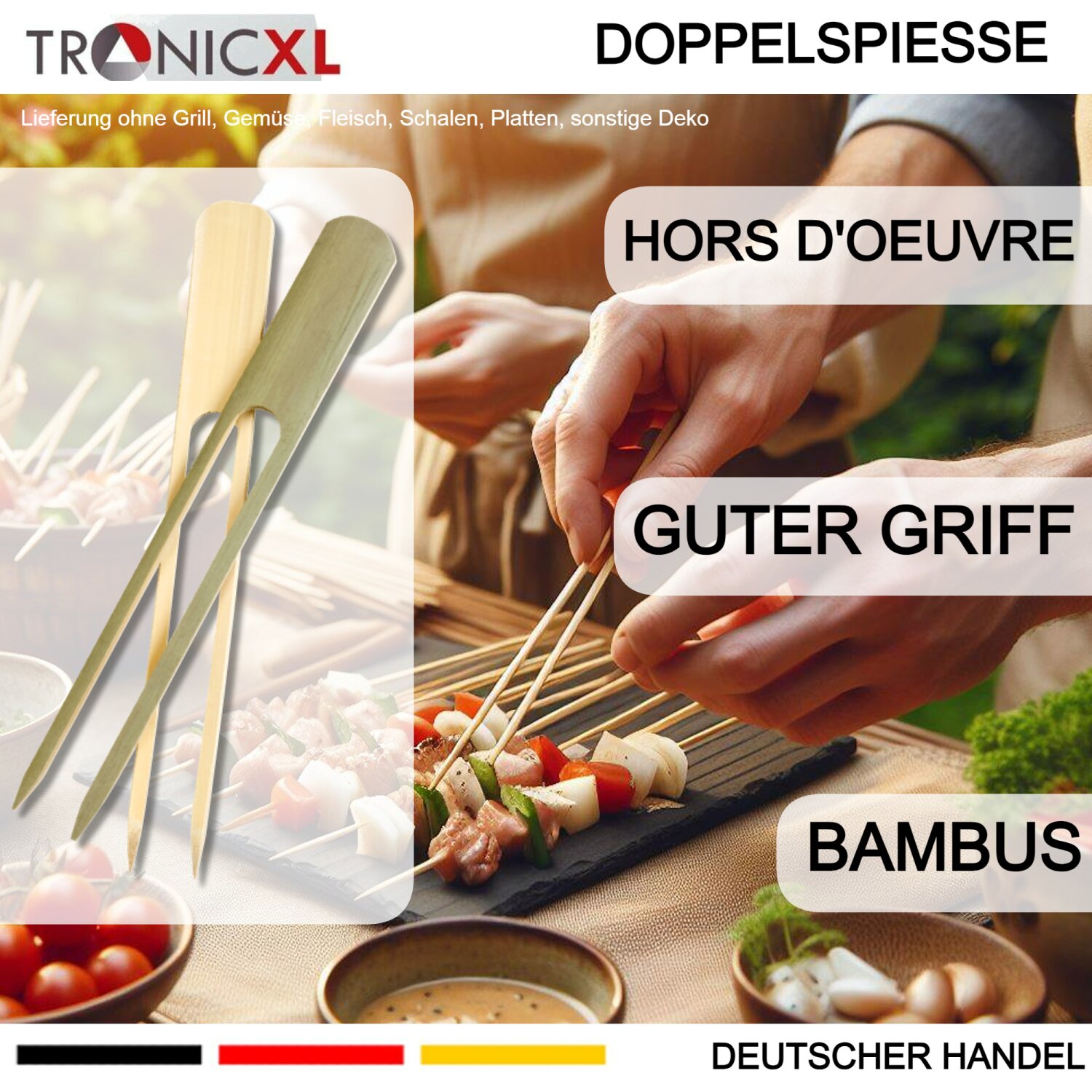 Grillzeit = Spießzeit! Diese 200 Bambus-Doppelspieße von TronicXL sind perfekt für deine nächste Grillparty. Aus umweltfreundlichem Bambus, robust und nachhaltig. Länge: 13,5 cm, angespitzt an einer Seite für einfaches Aufspießen. Das breite Ende ermöglicht einfaches Wenden auf dem Grill. Ideal für Fleisch, Gemüse, Käse und mehr - deiner Kreativität sind keine Grenzen gesetzt. Perfekt für Catering, Partys, Events und Fingerfood. Einfach zu handhaben und vielseitig einsetzbar. Mach deine Grillparty zum vollen Erfolg mit diesen praktischen Spießen!