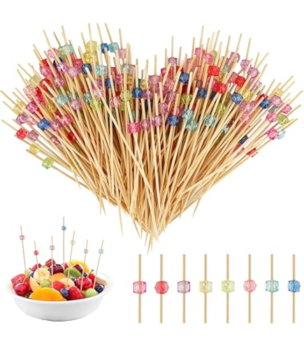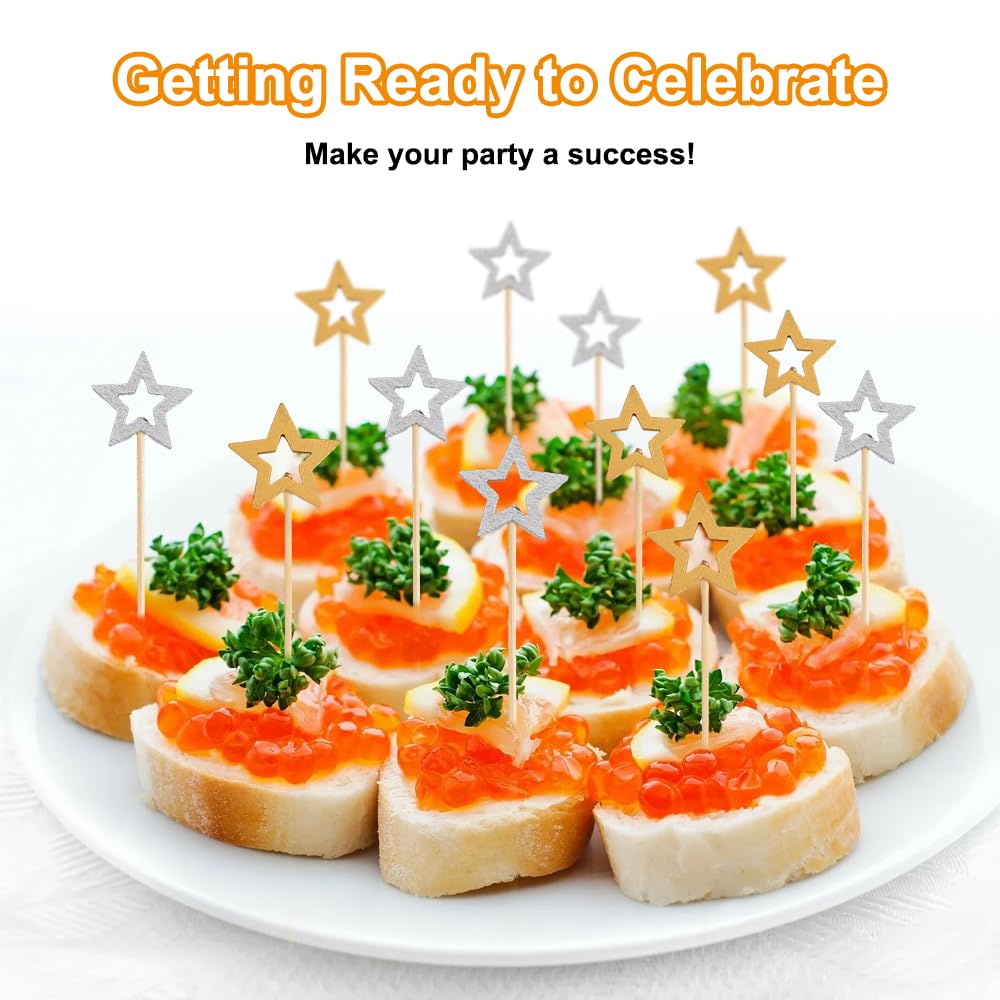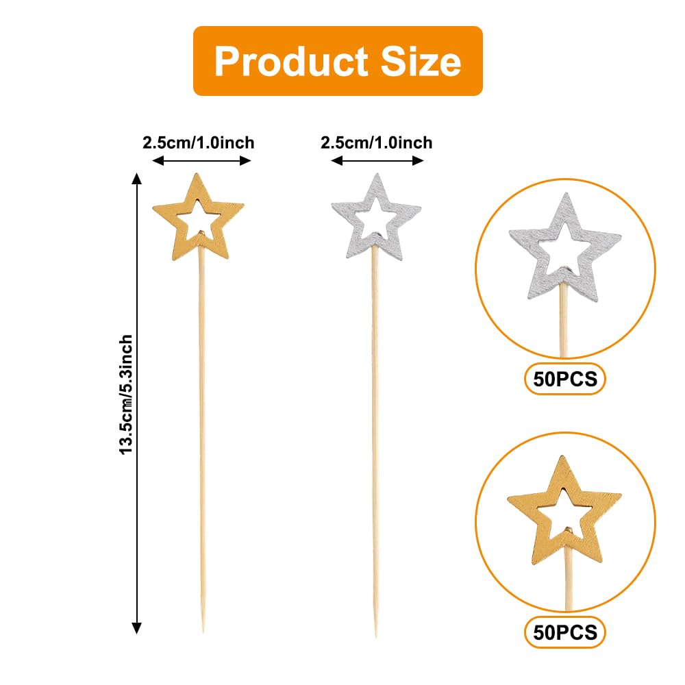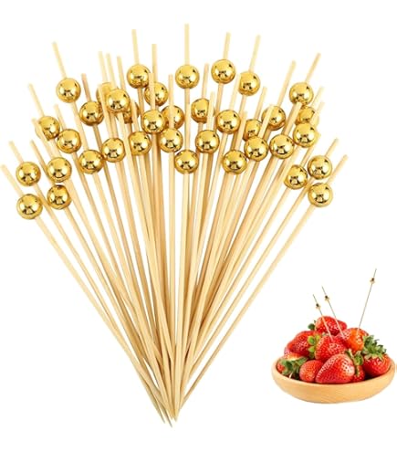 Mach deine nächste Party zum Highlight mit diesen eleganten Cocktailspießen! Im Set mit 50 goldenen und 50 silbernen Spießen aus natürlichem Bambus. Jeder 13,5 cm lang mit hohlem Stern-Design - viel schöner als langweilige Zahnstocher! Perfekt für Canapés, Obstspieße, Käsewürfel oder Cocktail-Garnituren. Die spitzen Enden gehen leicht durch Lebensmittel, die Sterne sehen dabei super dekorativ aus. Einweg-Produkt - einfach entsorgen nach Gebrauch. Ideal für Geburtstage, Hochzeiten, Weihnachten oder Karneval. Deine Gäste werden begeistert sein!