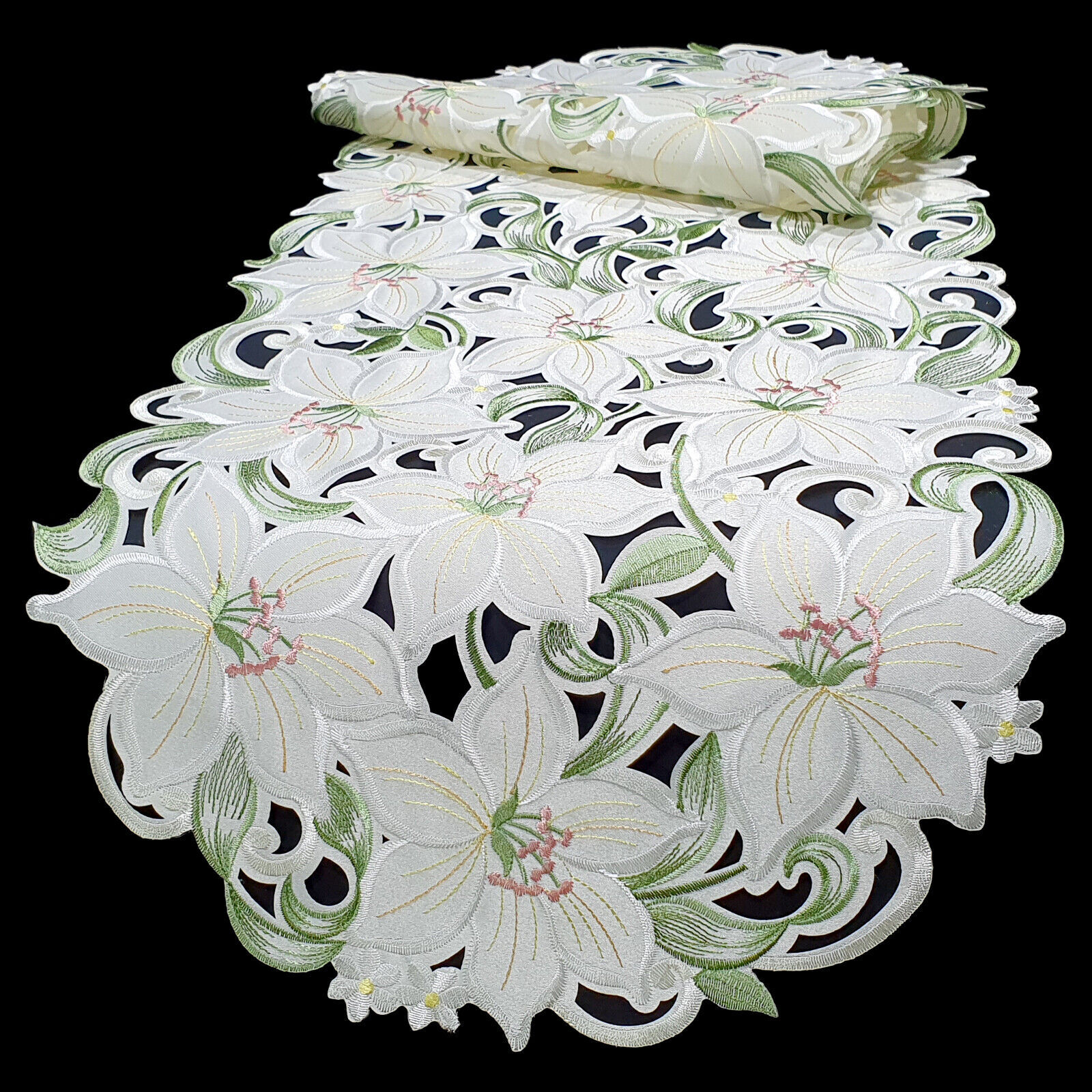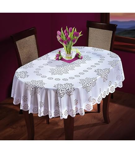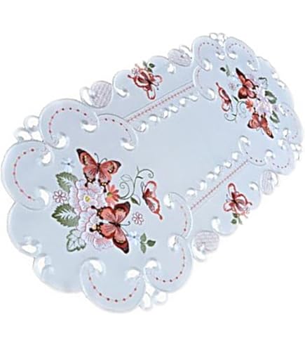 Wow, diese Tischdecke macht jeden Tisch zum Hingucker! Aus weichem Satin-Stoff in weiß, mit zarter Blumenstickerei. Oval, 40x85 cm - perfekt für kleinere Tische. Ländliches Design mit Vintage-Charme. Absolut schmutzabweisend und waschbar - kann immer wieder verwendet werden. Perfekt für Hochzeiten, Partys, Jahrestage, Abschlussfeiern, romantische Dates. Macht jeden Anlass besonders! Schützt den Tisch vor Kratzern und ist super dekorativ. Einfach drüberlegen und sofort ist Stimmung im Raum! Auch toll als Geschenk zur Einweihung. Einfach ein Must-Have für alle die es gemütlich und stylisch mögen!